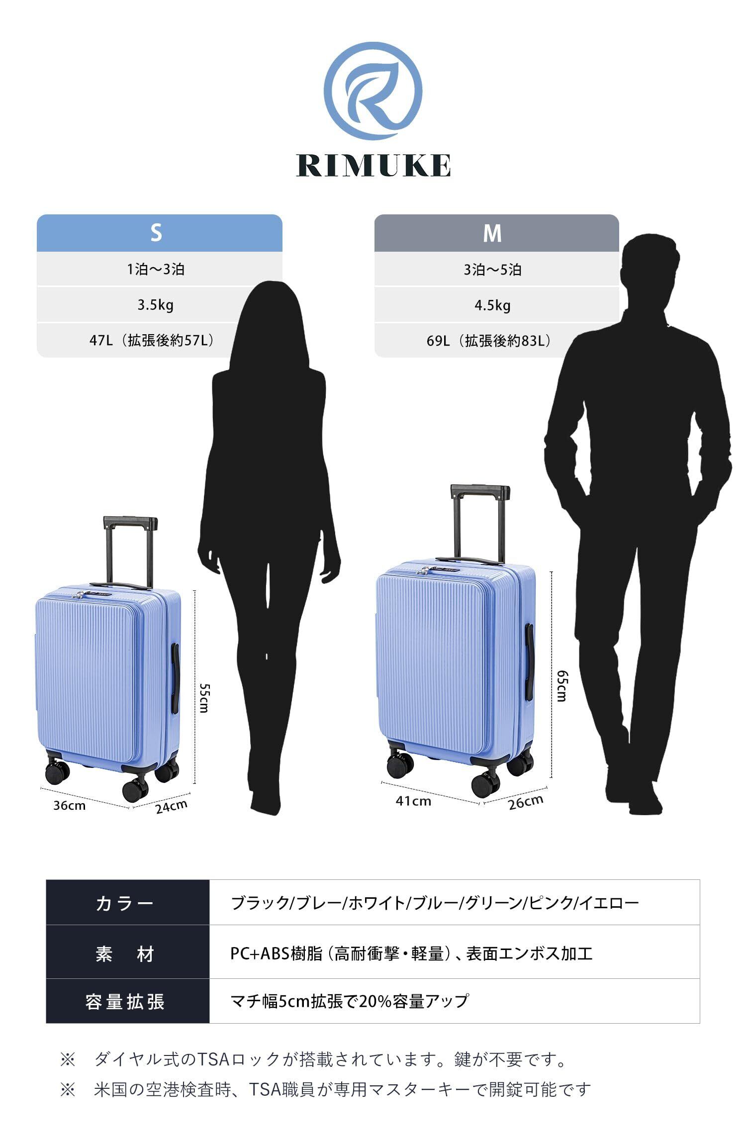【スーツケース 機内持ち込み・製品仕様】Sサイズ:約約W36×D23.5×H55cm / 重量:約3.5kg / 容量:約47L / 材質:ABS+PC(本体)、TPE(キャスター)機内持ち込み可能。Mサイズ:約W41×D26×H65cm / 重量:約4.5kg / 容量:約69L .Mサイズは機内持ち込み不可。※寸法は手作業で計測しておりますので、1~3cmの誤差が生じる場合がございます。