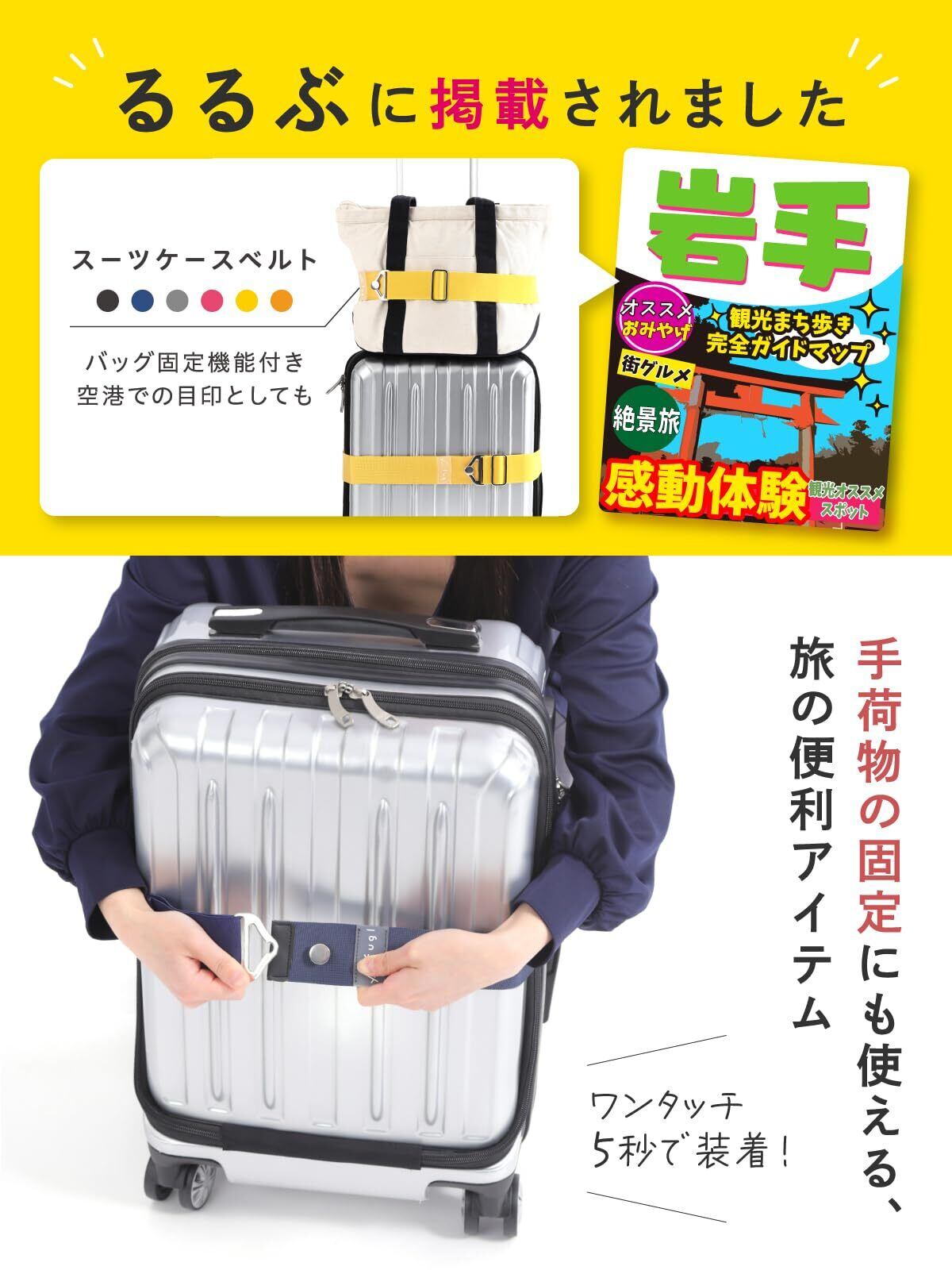 【荷物が固定できる】目印としての用途に加えて、荷物をスーツケースに固定することもできるから、片手が自由になります。