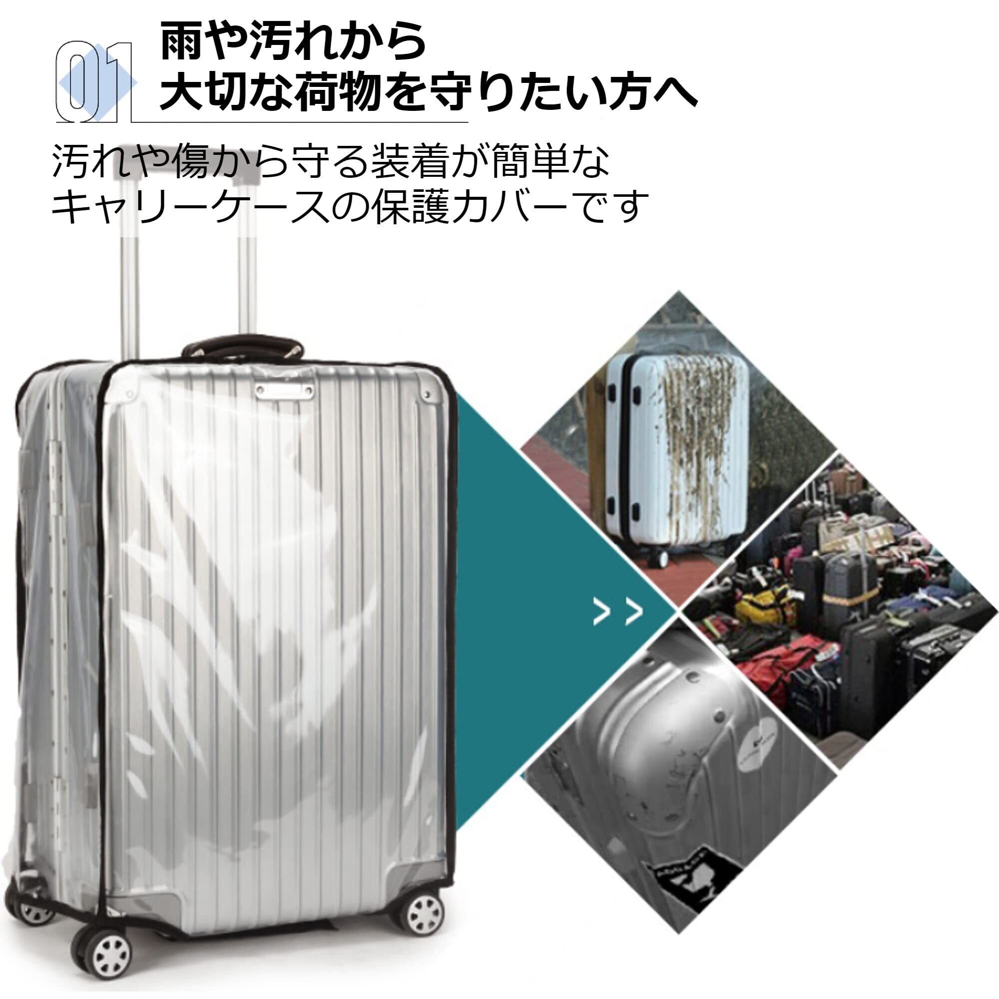 【安心の防水・防汚・傷防止】丈夫なPVC製なので汚れても水洗いできるのでいつでも清潔を保てます。色は透明なので、スーツケースのデザインはそのままで自分の荷物がはっきりわかります。 カバーのおかげでむやみに開けられる心配もないので、防犯にもなります。