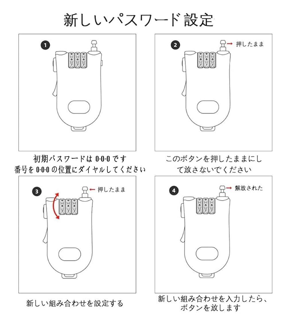 【引き込み式スチールケーブル】多機能セキュリティロック、スチールケーブルの長さは引き込み式で、最長1mまで調整可能、ロックされたアイテムの周りに締め付けることができ、複数のアイテムを一緒にロックでき、ボタンが引き込まれ、スチールケーブルは簡単に巻き戻すことができます。アイテムを固定する際に柔軟性と利便性を提供します。