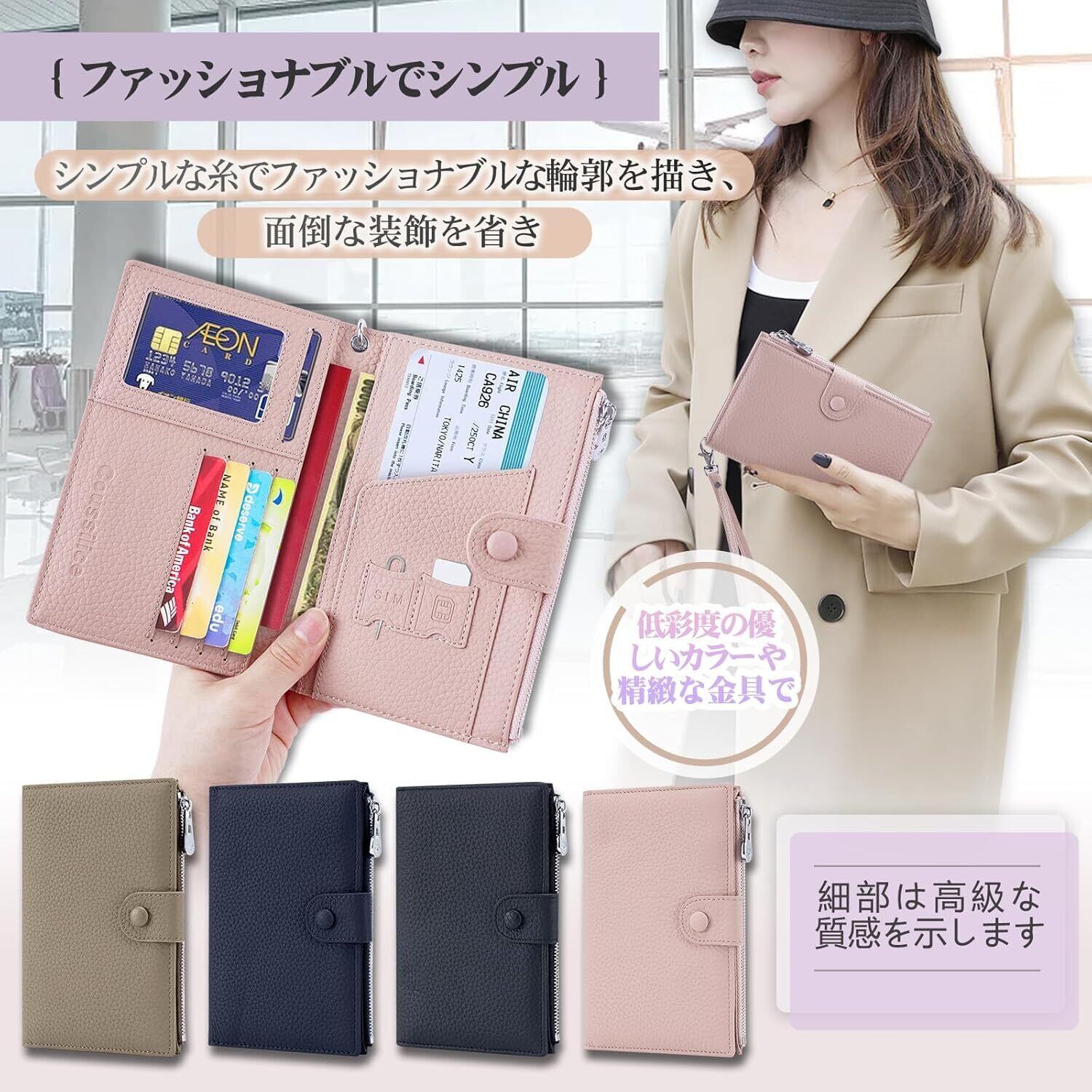 【小さいが収納力抜群】パスポートポケット×2、カード収納ポケット×4、写真ポケット×1、SIMカードポケット×2、航空券ポケット×1、ファスナーポケット×1。コンパクトでよく設計され、小さいが巧みな設計で異なるアイテムの収納を満たすだけでなく、コイン、小銭などの小物も収納でき、より便利で整然と旅行することができます。 携帯のSIMをよりやすい交換できるために、おまけSIMピンを提供いたします。