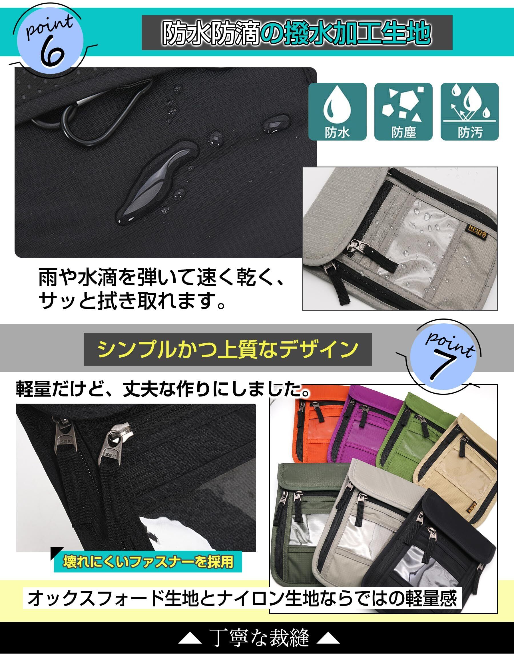 【7個ポケット搭載・“ちょうどいい”パスポートケース】皆様のお声を元に、ちょうどいいパスポートケースできました!海外旅行では思いのほかパスポートの提示が多くなると思いますので、出しやすく仕舞いやすいようにサイズは大き過ぎず小さ過ぎないサイズ調整を致しました。空港ではもちろん、お出かけにも!7個のポケット搭載、コンパクトなのに驚きの収納力を実現!高さ21.5cmのマジックテープのメインポケット(パスポート、航空券を取り出しやすい幅広設計)、インナーポケット(お金と紙類、大画面スマトが入るゆったりサイズ)、背面メッシュポケット(通気性がよく蒸れにくい)、コインポケット(小銭や硬貨やホテルのルームキーも取りやすく進化)、左サイドポケット(散らばったカードやレシートなどを綺麗に整頓)、右サイドポケット(地図、メモ帳などOK)、クリアカードポケット(奥行きを浅くして、ICカードやチケット等を取り出しやすい)の7つの充実した収納ポケット仕様。