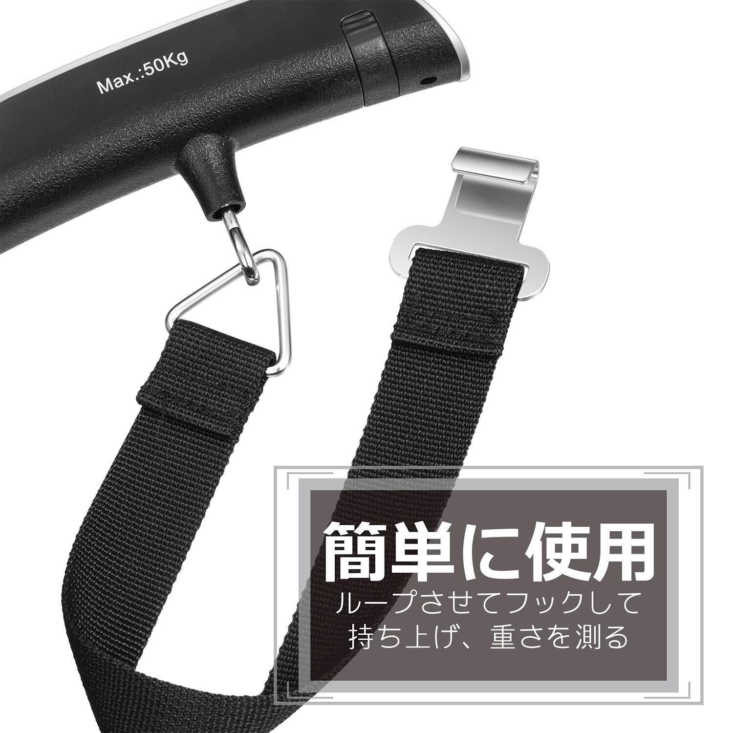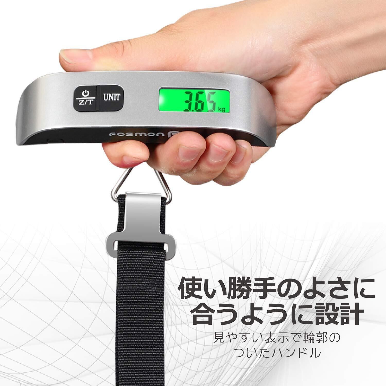 Fosmon (1個セット) 荷物 旅行はかり デジタル はかり/ベルト吊り下げ式ラゲッジチェッカー/計量器/携帯式デジタル スーツケース スケール 【測定可能単位:kg, g / 最大50kgまで量れる / ステンレス仕上げ/LCD液晶ディスプレイ/温度計機能付】便利 軽量 風袋引き機能付 (シルバ/ブラック)