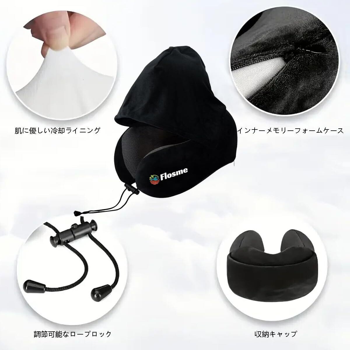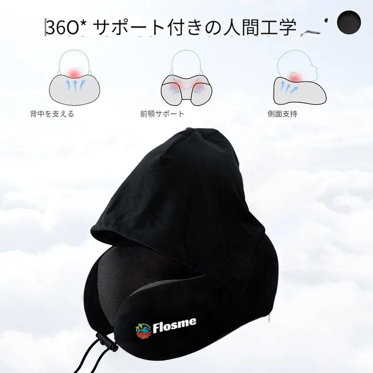 ネックピロー 飛行機 旅行 低反発 首枕 携帯枕 フード付きネックピロー 携帯 顔を隠す 首が痛くならない トラベル枕 U首まくら クッションカバーアイマスク 耳栓 収納袋 洗える 車 新幹線 ソファ 椅子 お昼寝 便利グッズ 快眠 仮眠 人気 自宅 旅行 プレゼント-ブラック