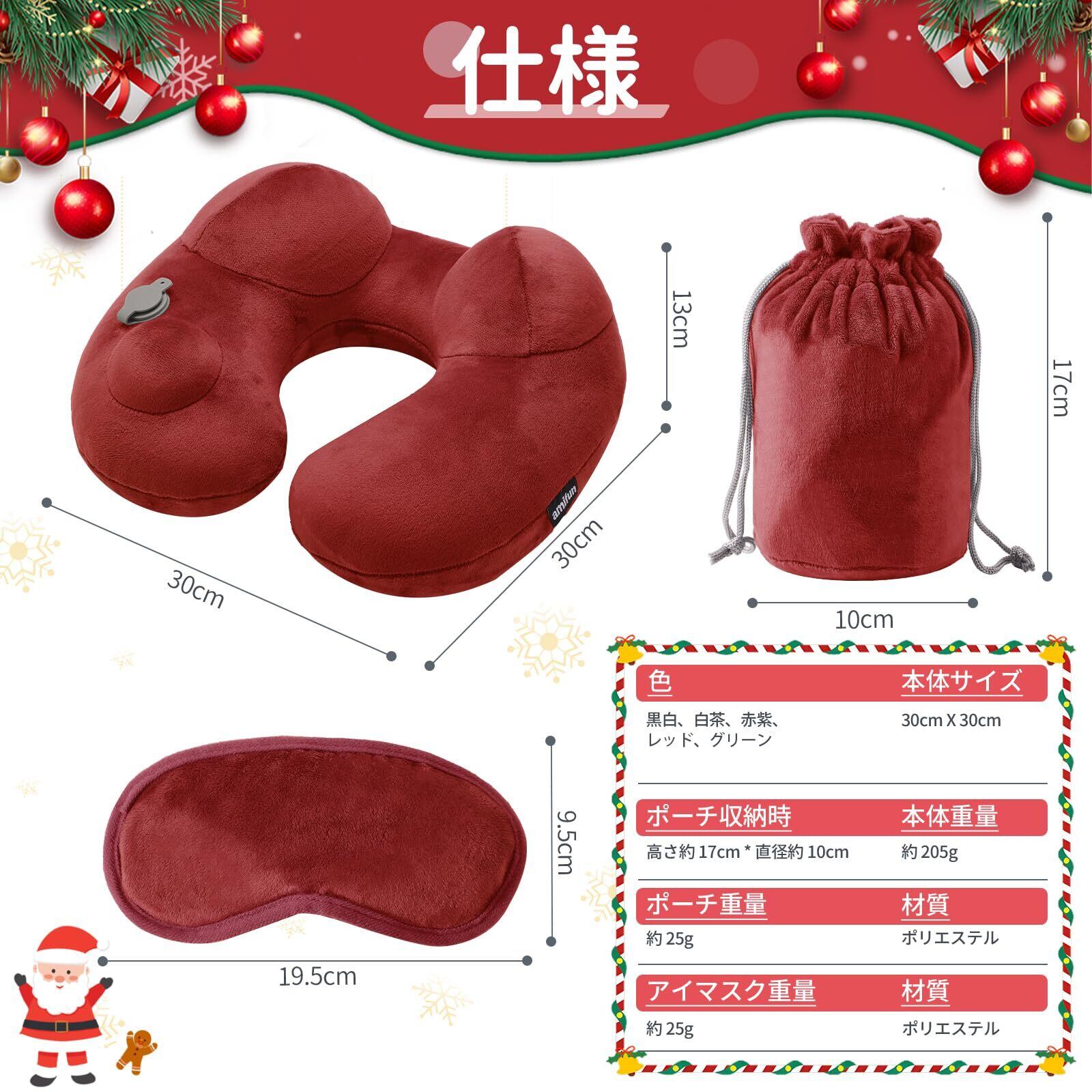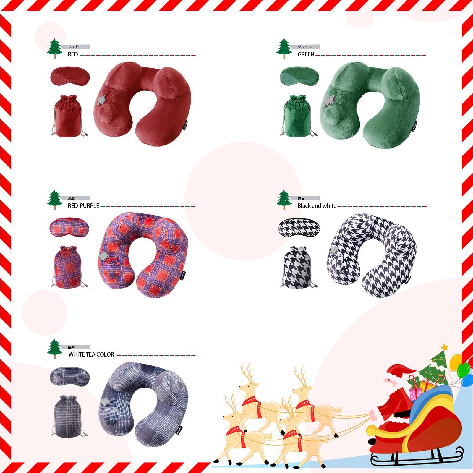 【数量限定】ネックピロー エアーピロー U字型枕 U型 旅行・移動・昼寝に最適、コンパクト収納。同色収納袋・アイマスク付属、防音イヤホン 2 個プレゼント。5 色選択可、取り外し洗濯可の旅行便利グッズ 节日 礼品 (レッド)