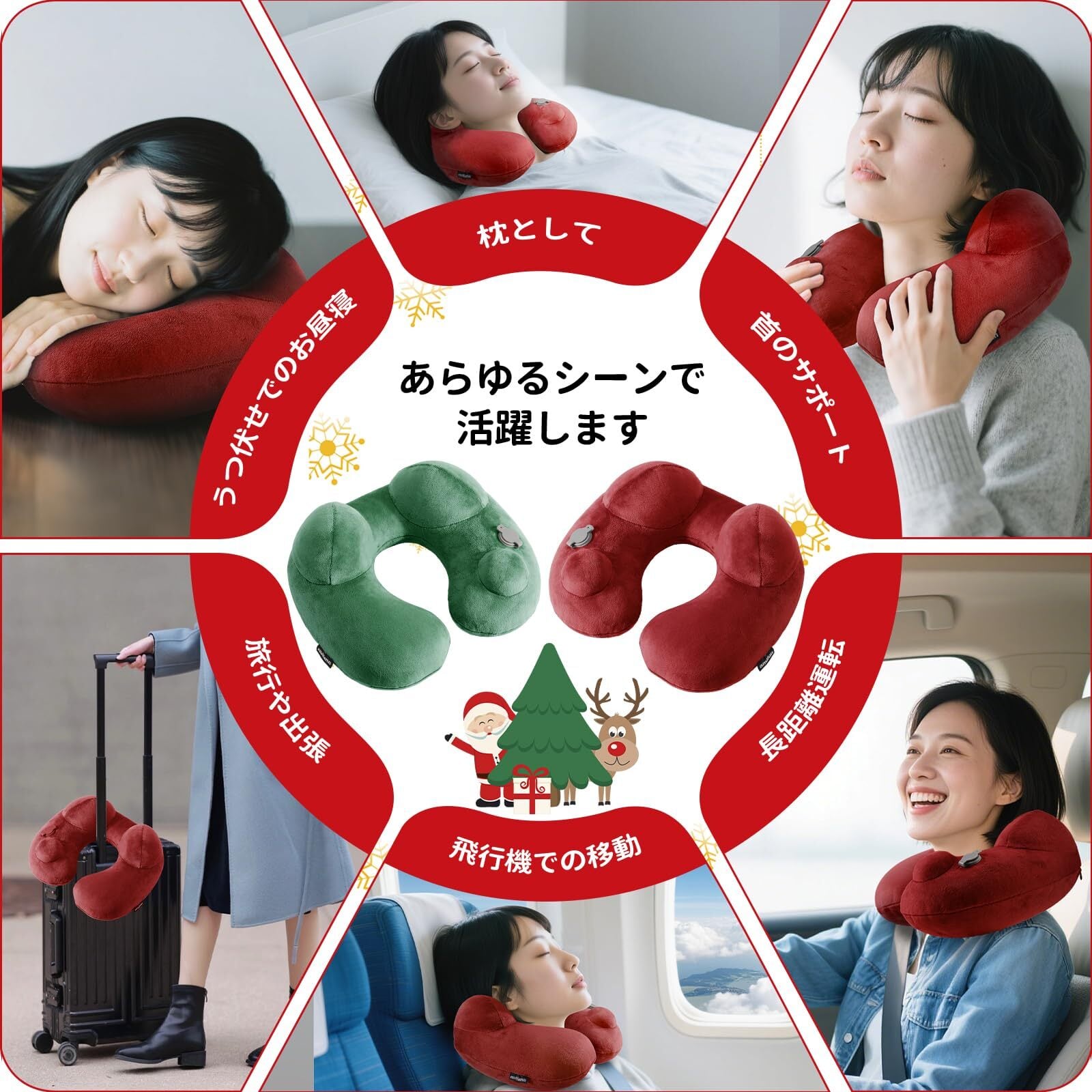 【圧倒的な快適さ&首サポート】 人間工学に基づく360°全周サポートが、首と頭のカーブにぴったりフィット。姿勢を安定させ、首や背中への負担を軽減します。電車や機内でも自然に体になじみ、うたた寝による「首痛」や「肩こり」の心配がありません