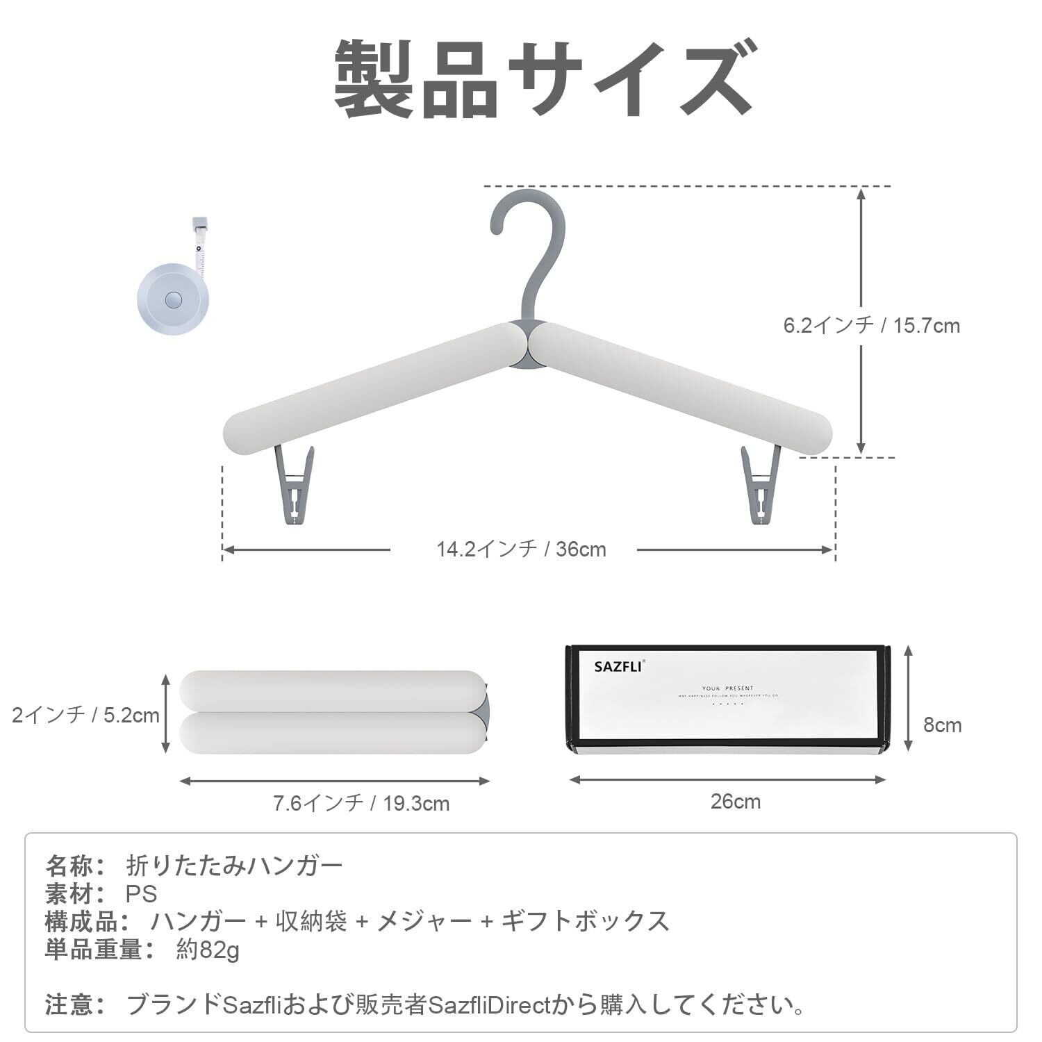 省スペースでポータブル: 各ハンガーはわずか80gの軽さで、折りたたむとコンパクトなサイズ(19.3 x 5.1 x 1.5 cm)になり、持ち運びや収納が簡単です。展開時には38 x 10.9 x 1.5 cmのサイズになり、さまざまな衣類に対応します。