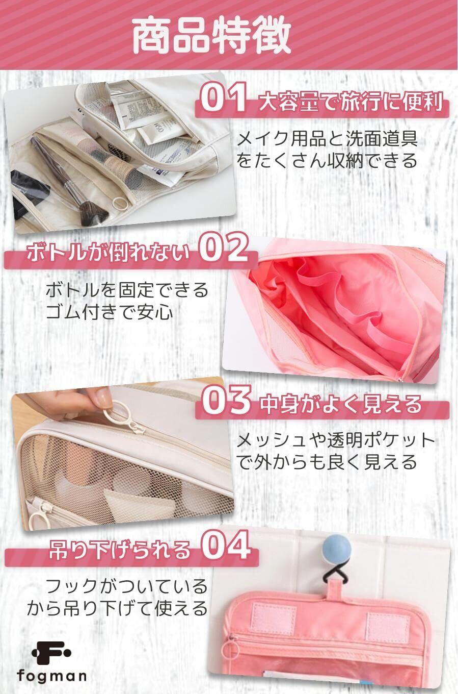 【新春セール】fogman トラベルポーチ トイレタリーバッグ 大容量 フック付き 洗面用具入れ 化粧ポーチ (ピンク)