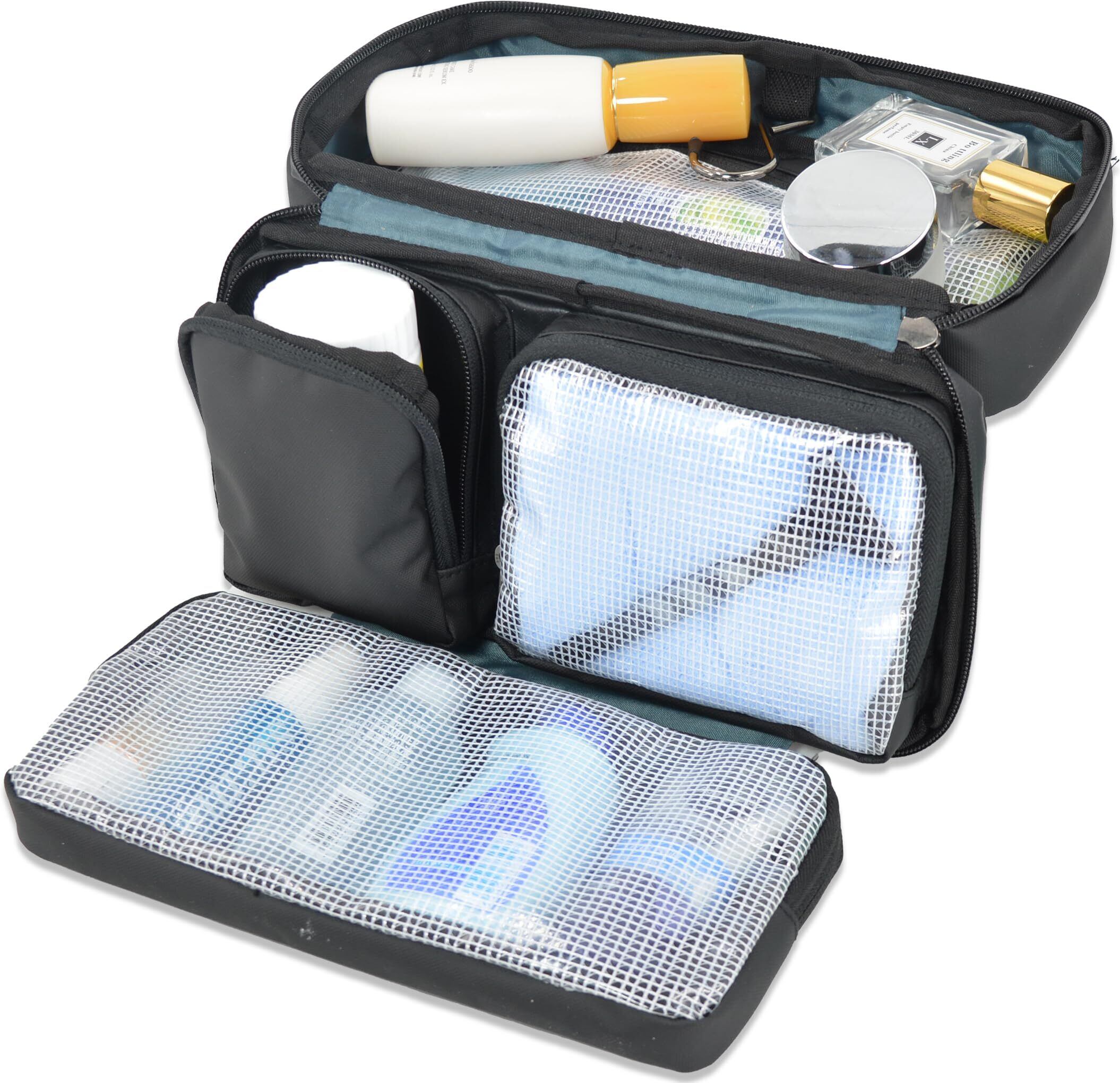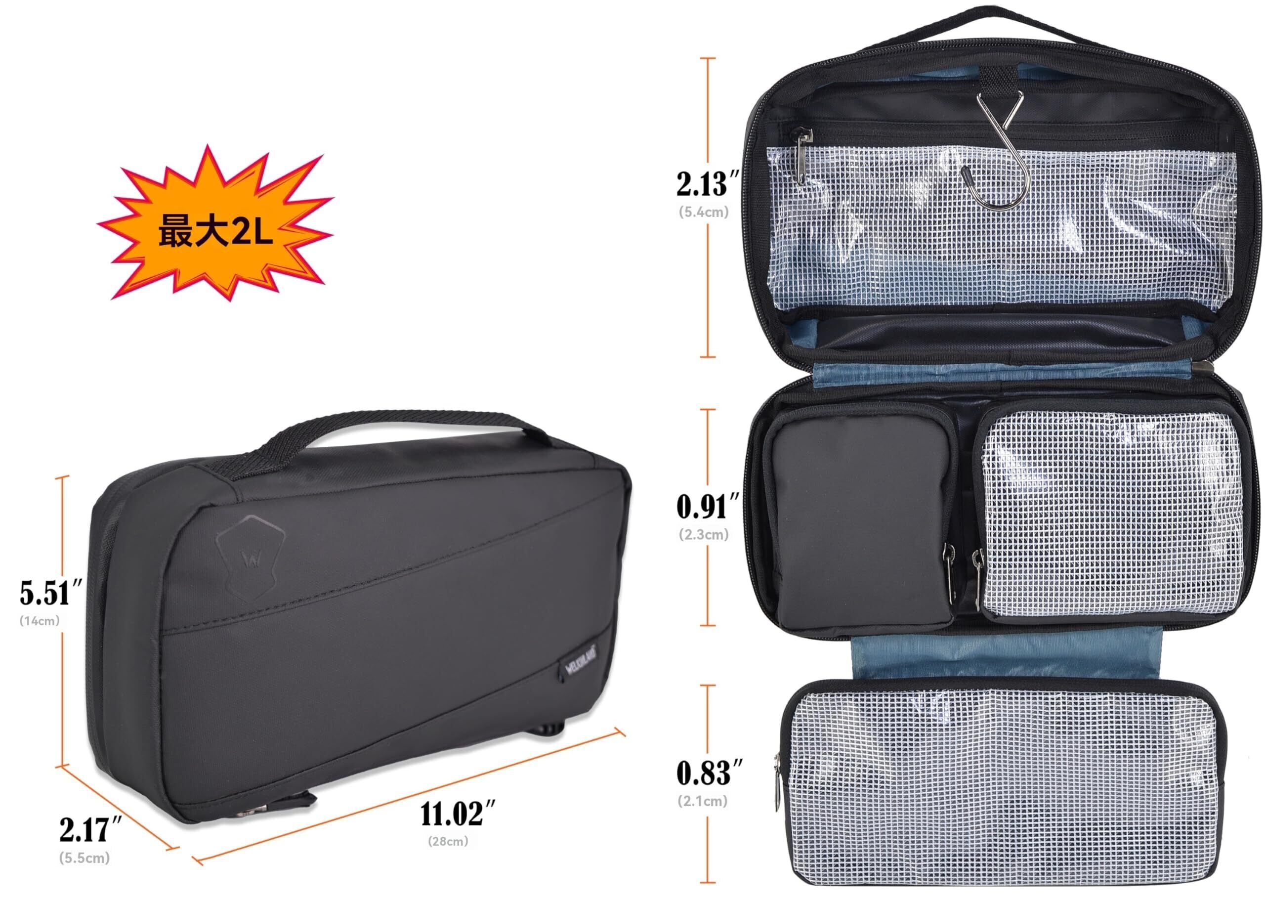 WELKINLAND 6ポケットトイレタリーバッグ、シェービングバッグ、シャワーバッグ、メンズバスルームバッグ、衛生バッグ、メンズオーバーナイトバッグ、バスアメニティ、メンズトイレタリーバッグ、旅行、ハンギングトイレタリーバッグ メンズ, ブラック, 5.51"*2.17"*11.02", 頑丈で便利なトイレタリーバッグ。