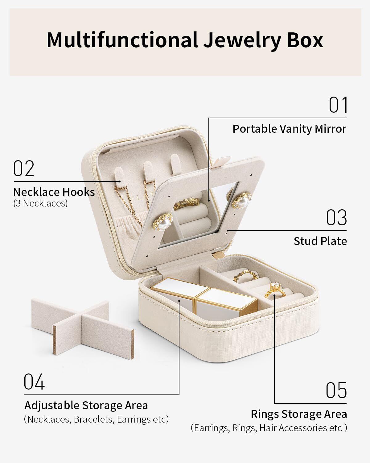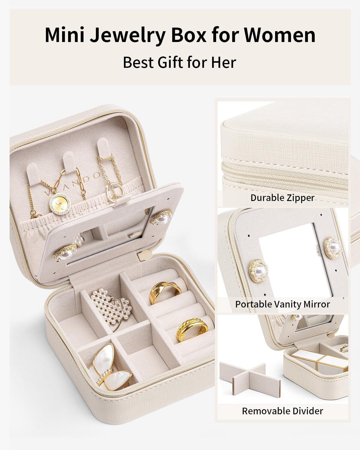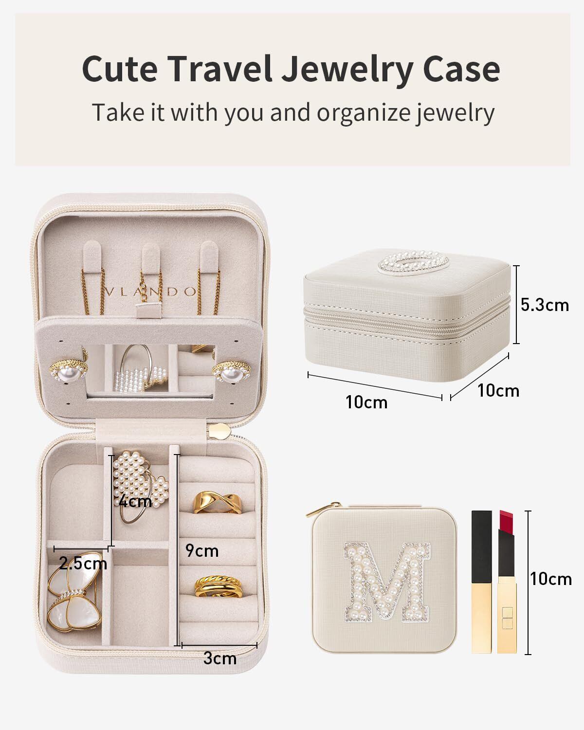 Vlando 誕生日プレゼント女性 ジュエリーボックス 名前入り プレゼント 携帯用 鏡付き ジュエリーボックス トラベル 結婚祝い プレゼント 記念日 バレンタイン 退職 祝い 贈り物(ホワイト-M)