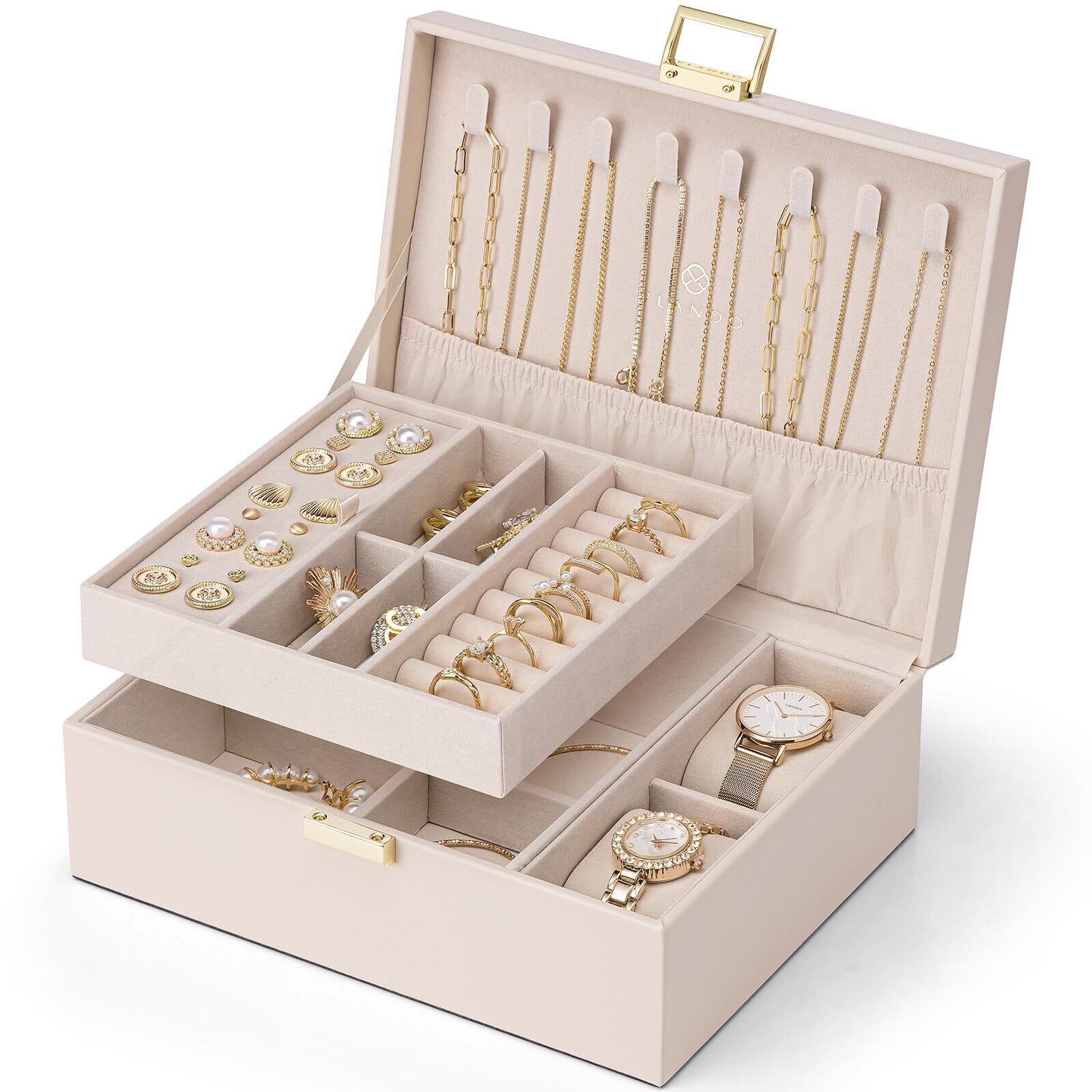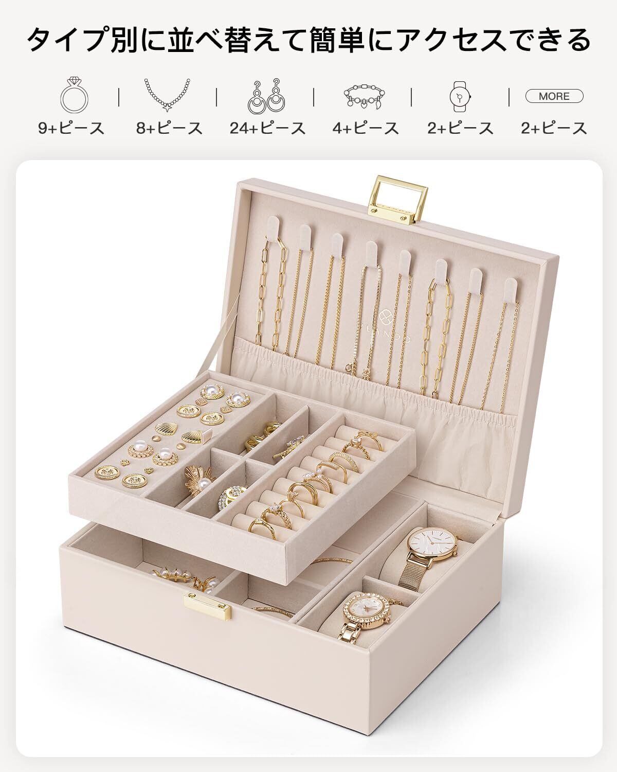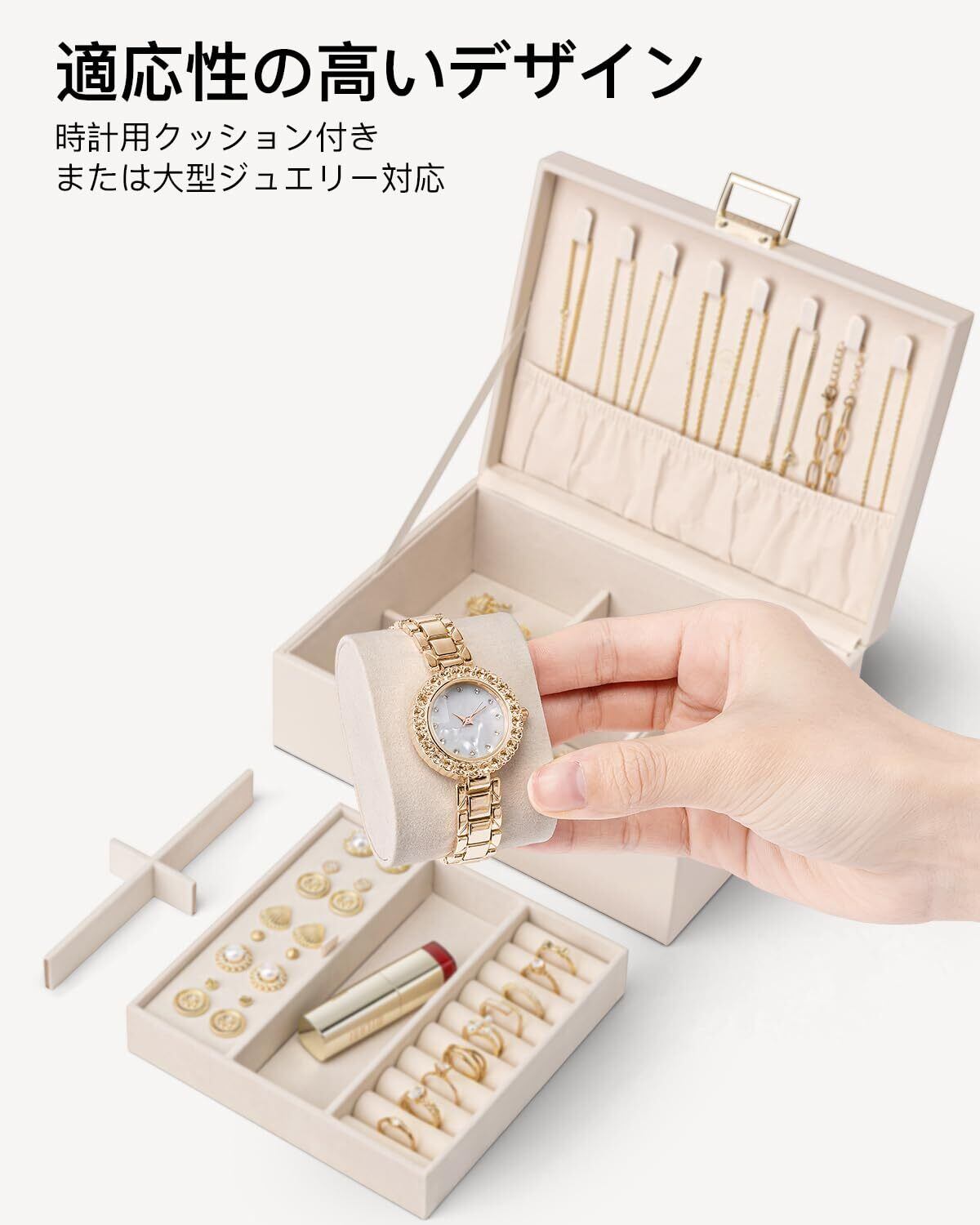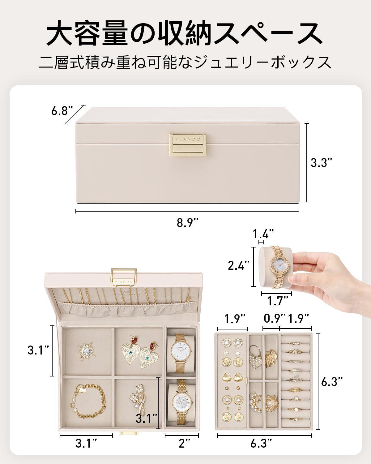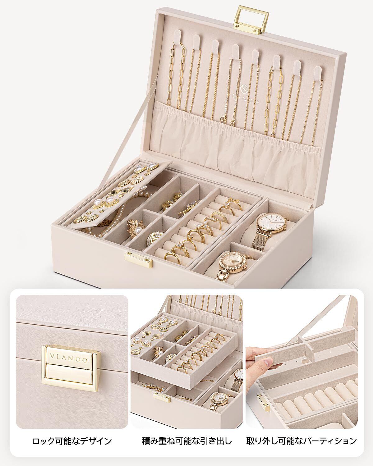 Vlando ジュエリーボックス 2層 大容量 取り外し可能 時計 ネックレス ピアス 指輪 ブレスレット 女性 プレゼント 誕生日 ギフト (アプリコットピンク-plus)