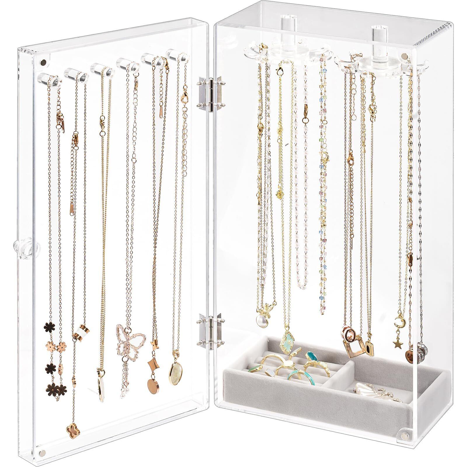 容量:ネックレス24本の収納可能;取り外し可能なベルベットトレイもあり、小さなアクセサリも整理できます。