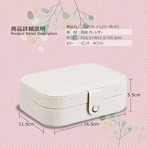 [TS.CORP]ジュエリーボックス 携帯用 レザー 大容量 収納 アクセサリーボックス コンパクト リング ピアス ネックレス ピンク (ホワイト)