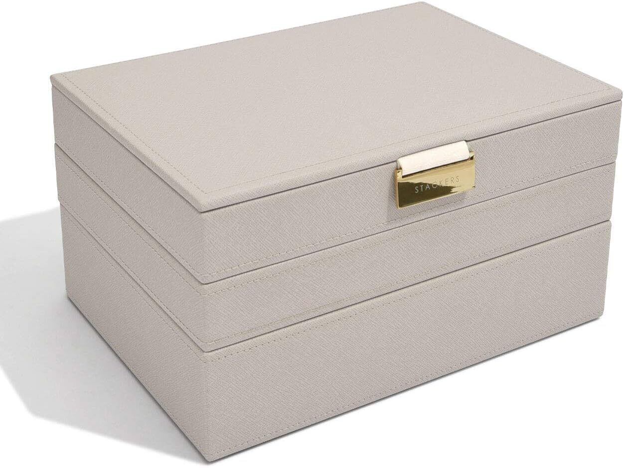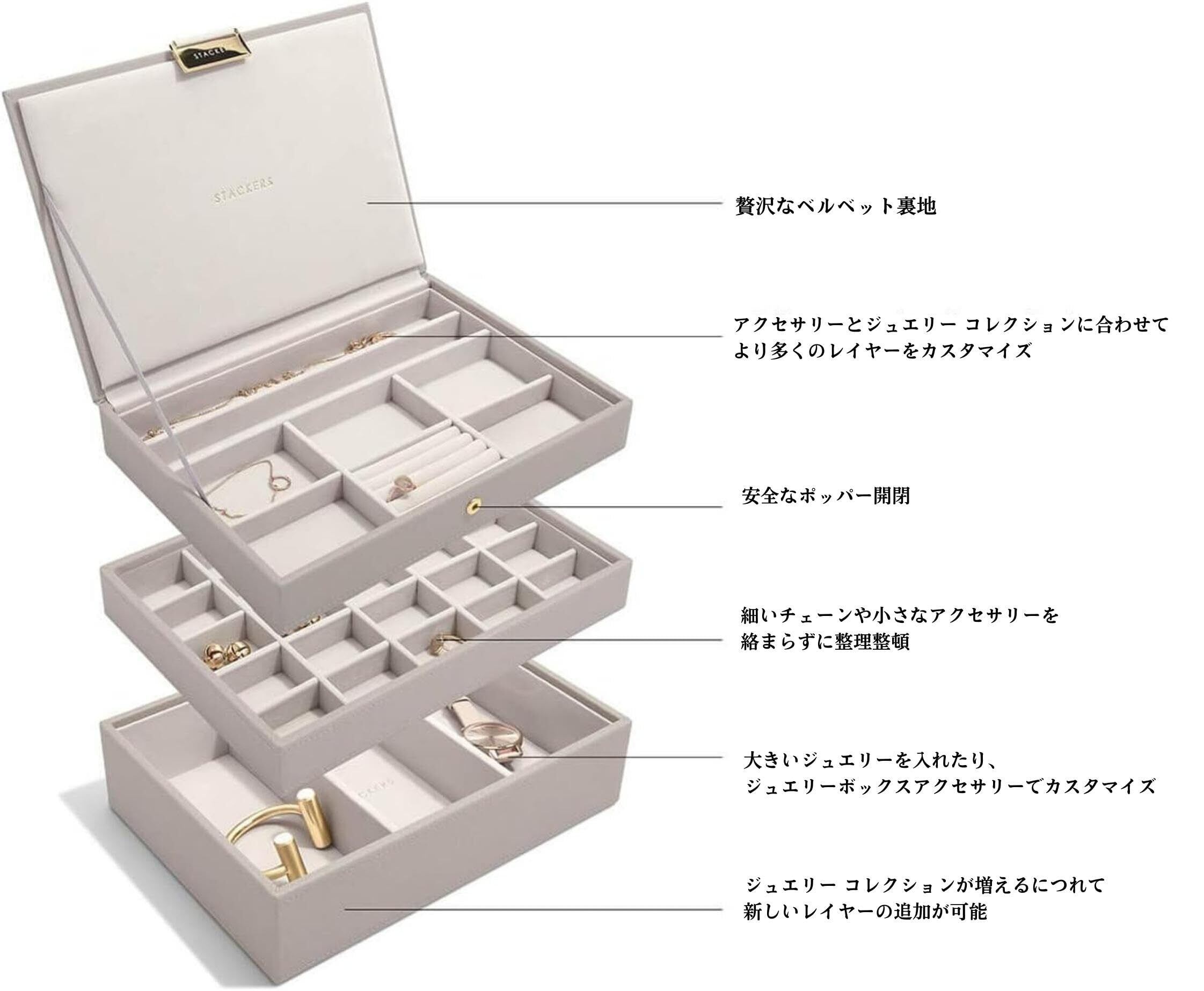 STACKERS LONDON (スタッカーズ ロンドン) 高級アクセサリーボックス 大容量 3段セット 積み重ね可能で交換可能なレイヤー プレミアムジュエリー 収納ケース 宝石箱 (グレージュ)