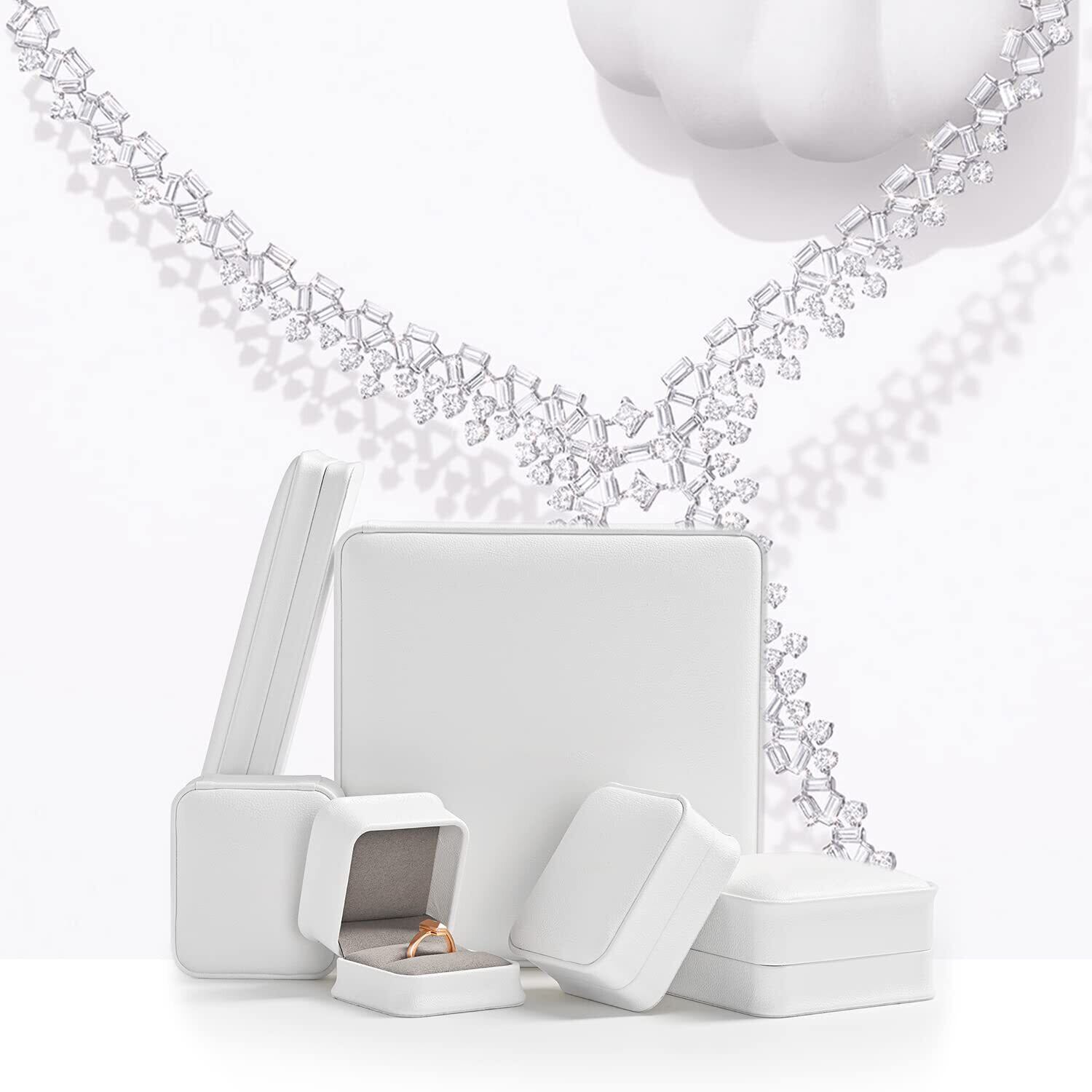 【セット内容】指輪ケース:1点。サイズ:幅6.5cm × 奥行6.5cm × 高5cm。重量:0.07KG。カラー:ホワイト。プロポーズの際や特別な日のギフト用としても、この指輪ケースがその瞬間を一層特別なものにします。️ケースのみの販売となり、ジュエリーは付属しません。