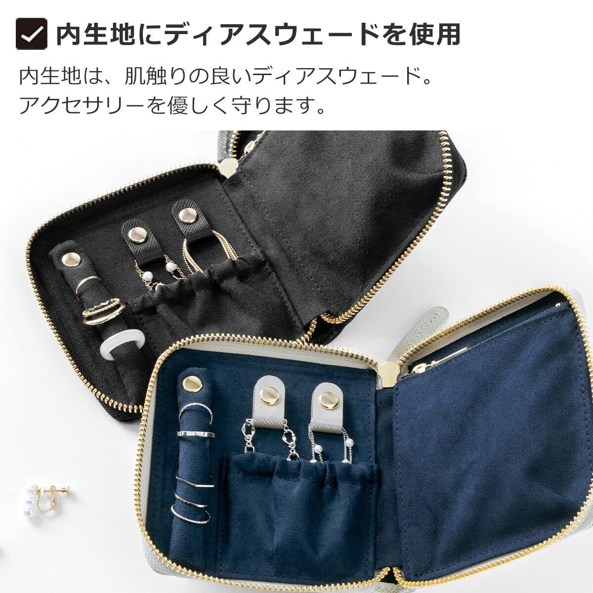 ラウンドファスナー採用で、中身が見やすく出し入れしやすい設計です。内生地は、肌触りの良い、ディアスウェードを採用。アクセサリーを優しく守ります。