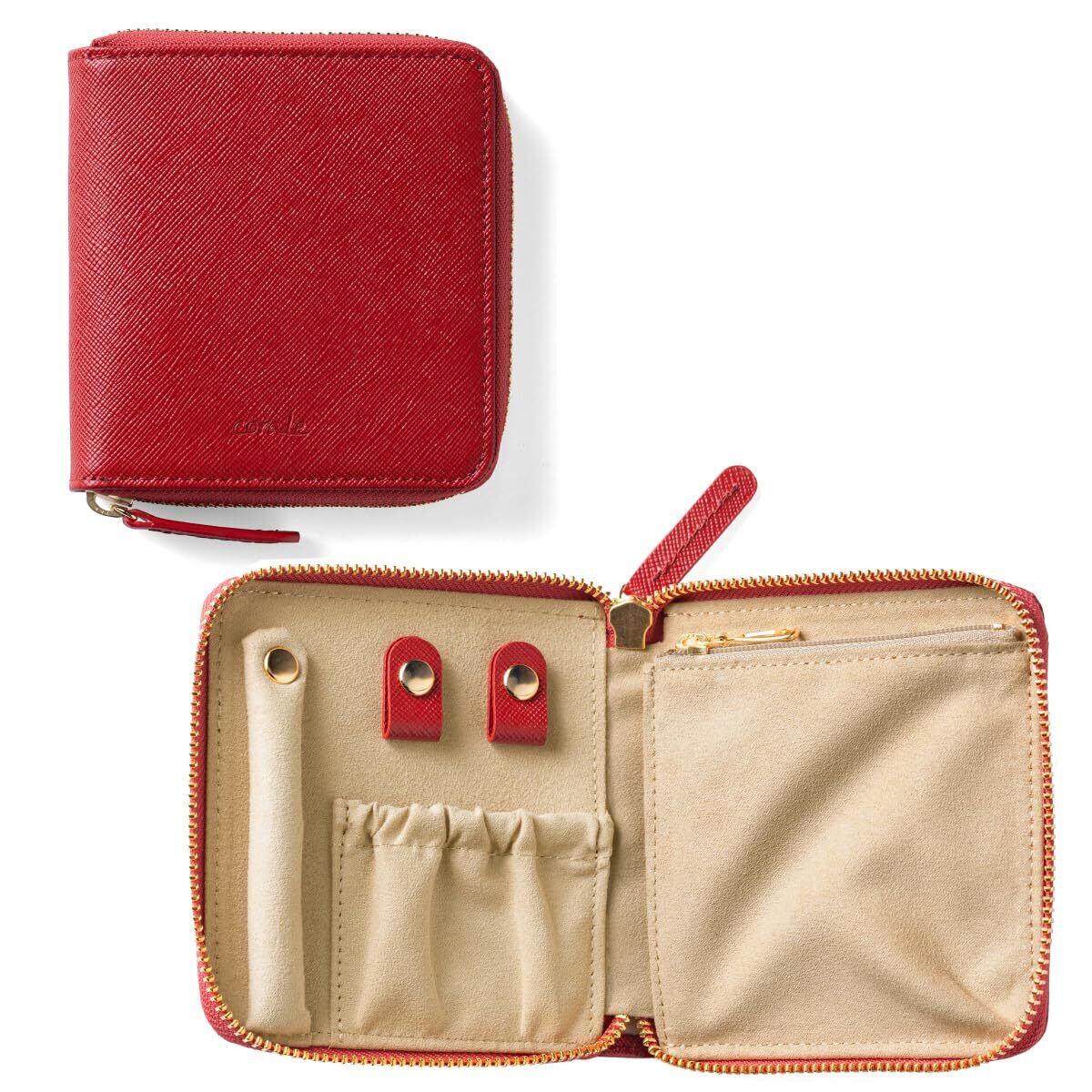 (コラーレ) corale アクセサリーケース 持ち運び レディース 革 アクセサリーポーチ 携帯用 トラベル 旅行 (レッド)