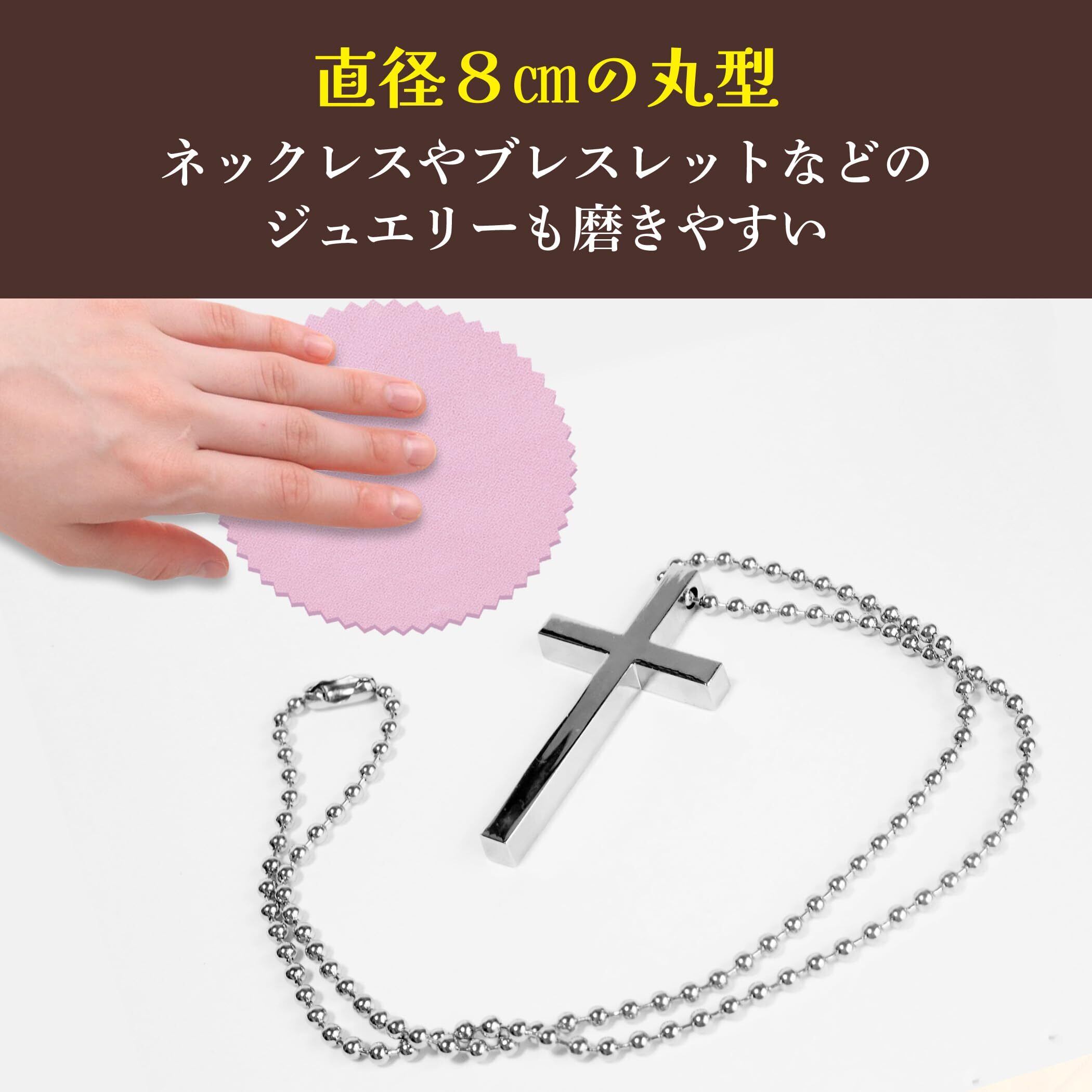 【ピカピカに仕上げる高品質スエードクロス】金や銀、プラチナなどのジュエリーを磨きたいときにご活用いただける円形のジュエリークロス10枚セットです。表面の小さな傷を消して、ジュエリー本来のツヤ感を取り戻すことが出来ます。