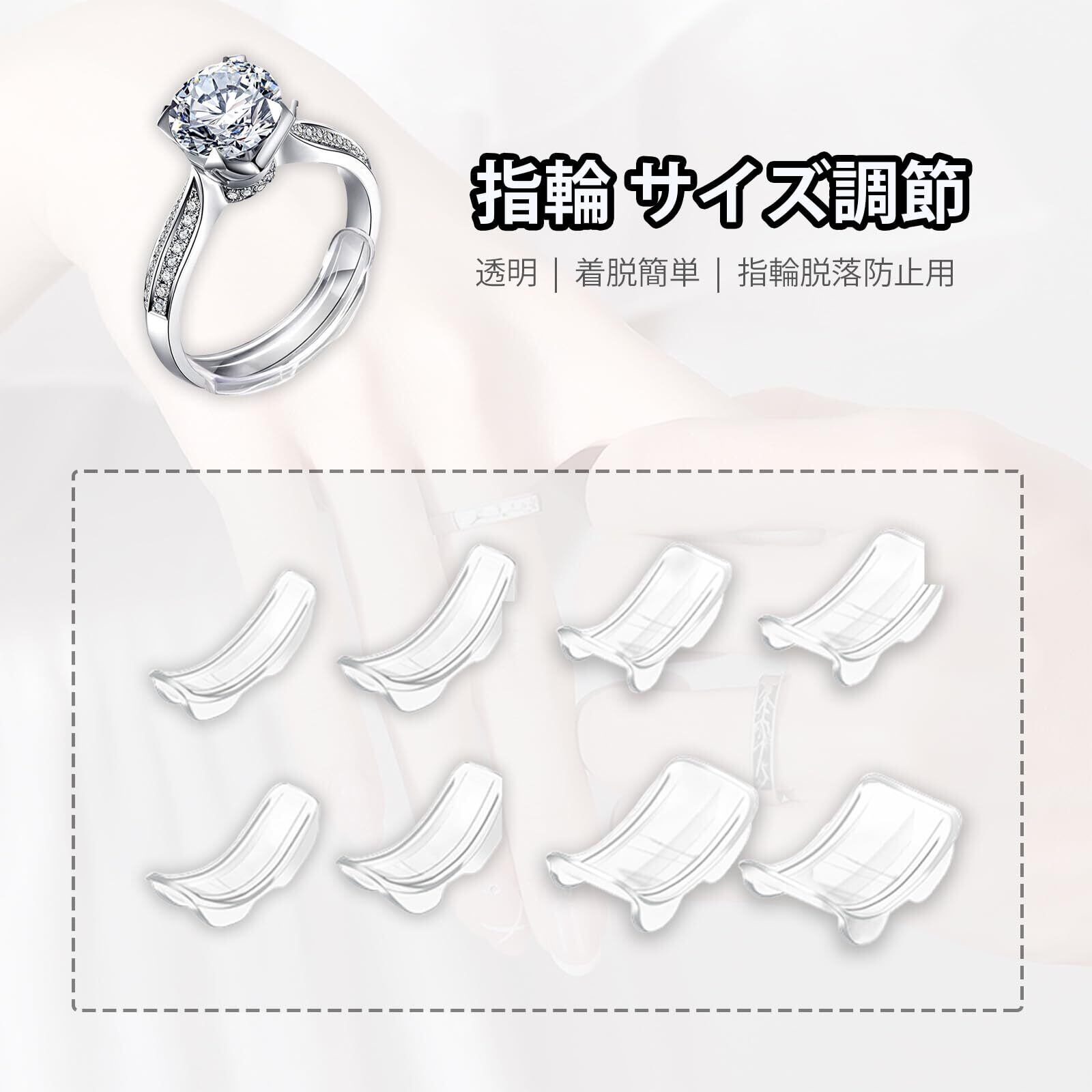【透明なデザイン】透明素材を使用した指輪サイズ調整は、指輪の美しさを損なわず、完璧なフィット感を提供し、快適な着用体験を実現します。