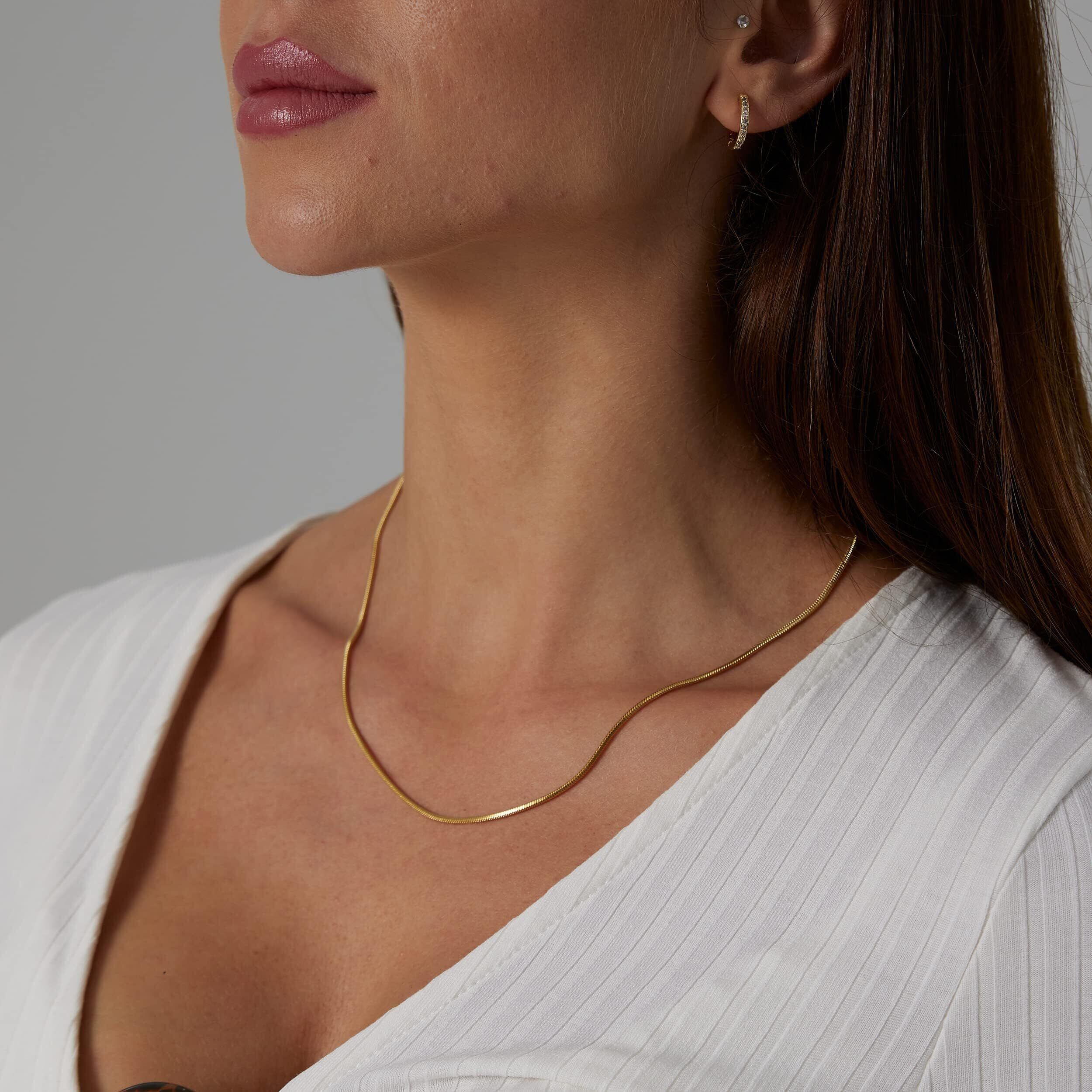 【人気のスネークチェーンネックレス】滑らかなフォルムが大人な雰囲気たっぷりのスネークチェーン。どんなファッションにも合わせやすいシンプルさがありながら、程よいボリューム感があるのであなたの首元を華やかにしてくれます。シンプルにチェーンのみでつけたり、お気に入りのペンダントトップをつけるのもおすすめです。メンズにもレディースにも人気の高いデザインでどなたにでもおすすめできるシンプルなチェーンネックレス!
