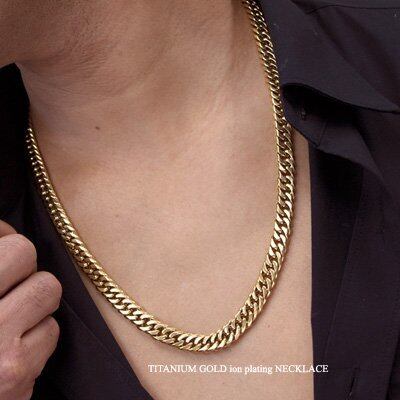 【新着商品】[e-宝石屋] チタン ダブル喜平ネックレス ゴールドイオンプレーティング加工 金属アレルギー対応