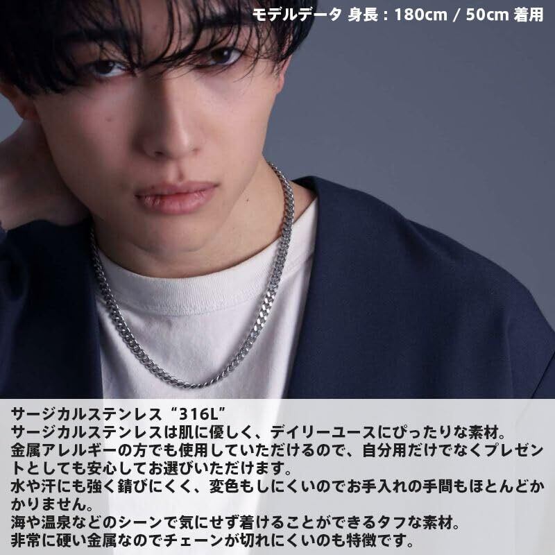 【2022最新】[ライオンハート] ラッピング済 チェーンネックレス 6.9mm幅 カット喜平 サージカルステンレス316L 金属アレルギー対応 シルバー 喜平チェーン 別注ポーチ付き メンズ ブランド