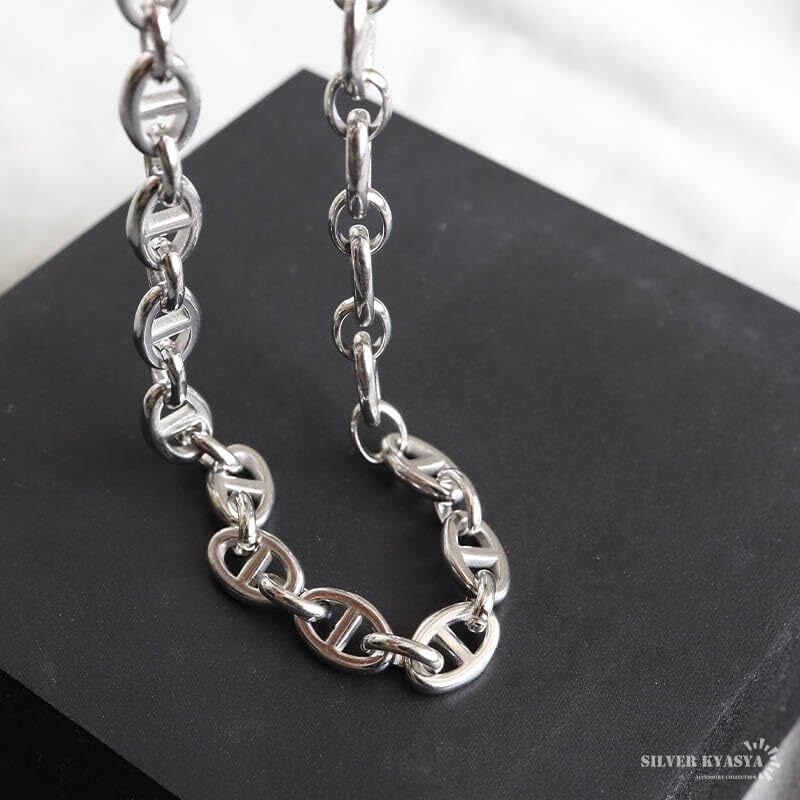 【在庫セール】[silver KYASYA] ステンレス アンカーチェーンネックレス チェーンネックレス 8mm ゴールド シルバー 鎖 錨 人気 トレンド 流行り お洒落 おしゃれ 金属アレルギー対応