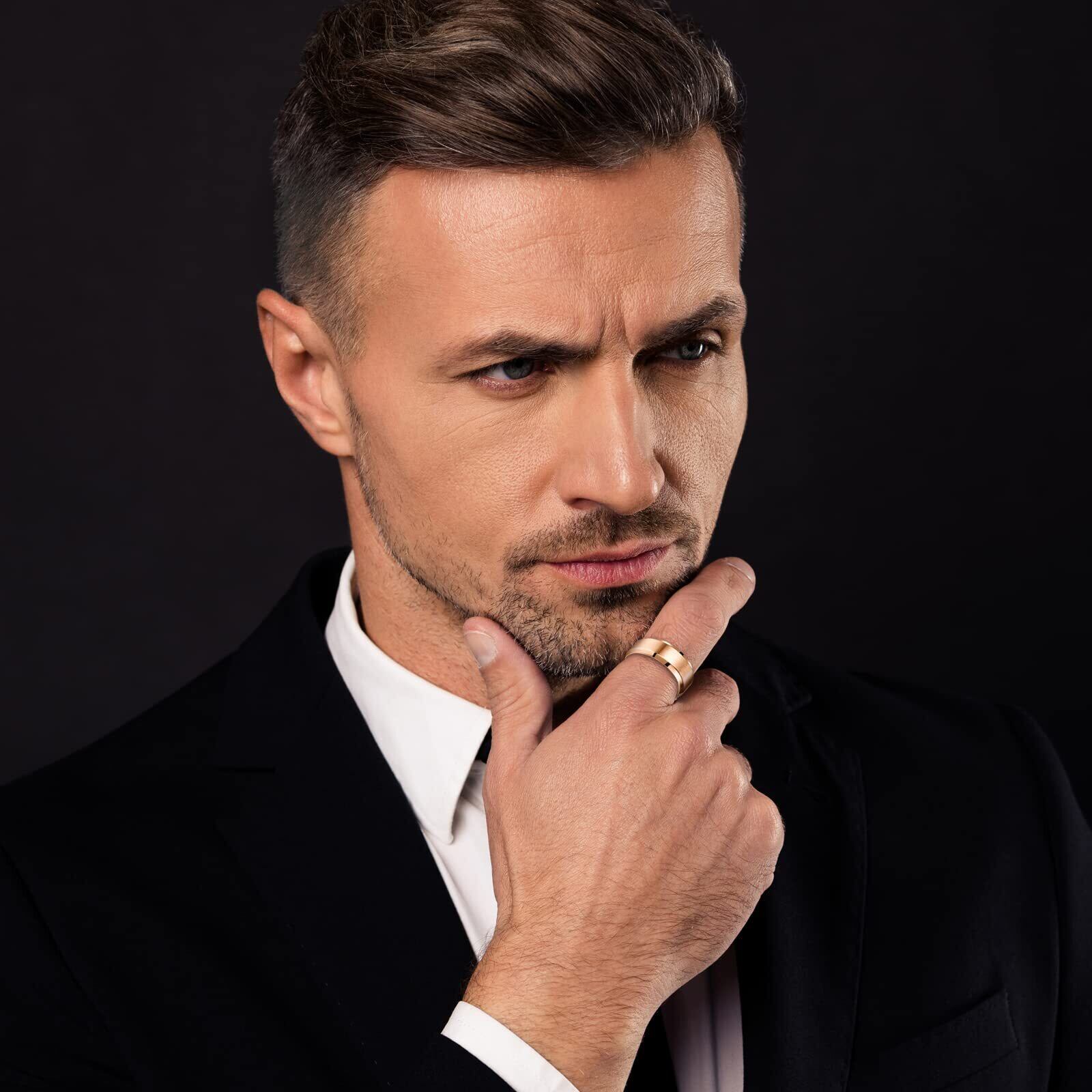 [Flongo] メンズ指輪 結婚リング ステンレス指輪 シンプル ファション 8MM 愛の証 幸せの鍵 軽量 男の子 プレゼント バレンタインデー クリスマス 記念日 誕生日 ブラック 「日本サイズ」