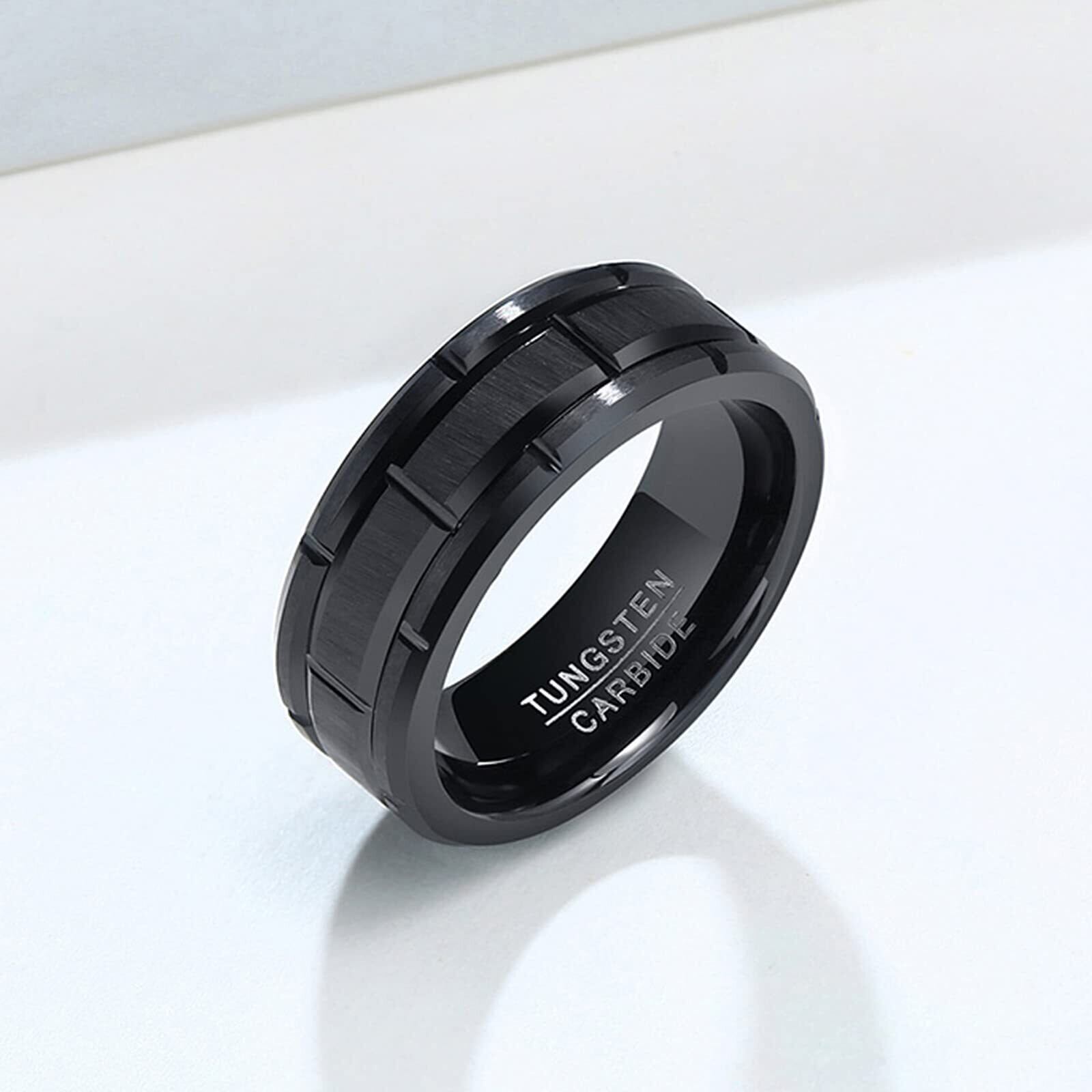 【高品質なタングステン製】 タングステン リング ブラック 黒 指輪 メンズ おしゃれ 25号指輪 幅8mm 本物のタングステンカーバイドによって作られており、比重は金とほぼ同じ、その硬度はダイヤモンドに匹敵。耐久性、低刺激性、優れた耐引掻性などの性能があり、いつまでもその高度な輝きを失いません。