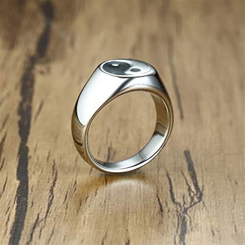 [Rockyu] 指輪 ステンレス メンズ シルバー 八卦 陰陽図 印台 刻印 リング 22号 鏡面加工 平打ち アレルギー対応