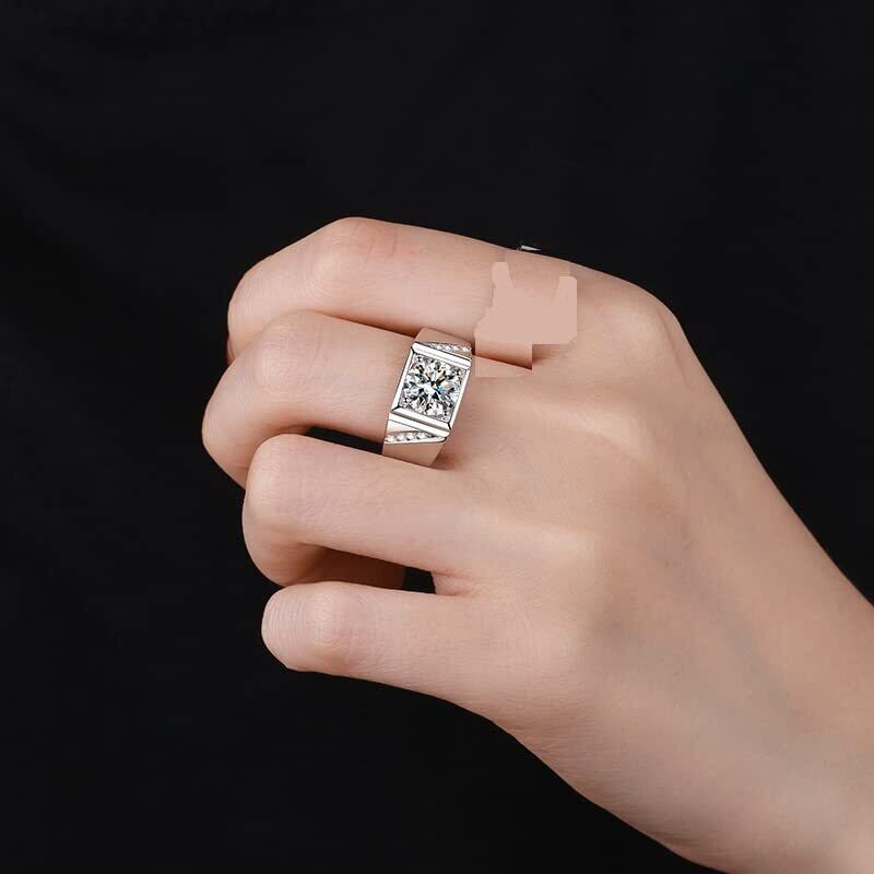 [sjmygudgo] 男の指輪 純銀指輪 5層白金メッキ 婚約指輪 人気 1CT 円形模擬ダイヤモンド 男の結婚指輪 愛の声明 ジュエリー 誕生日プレゼント