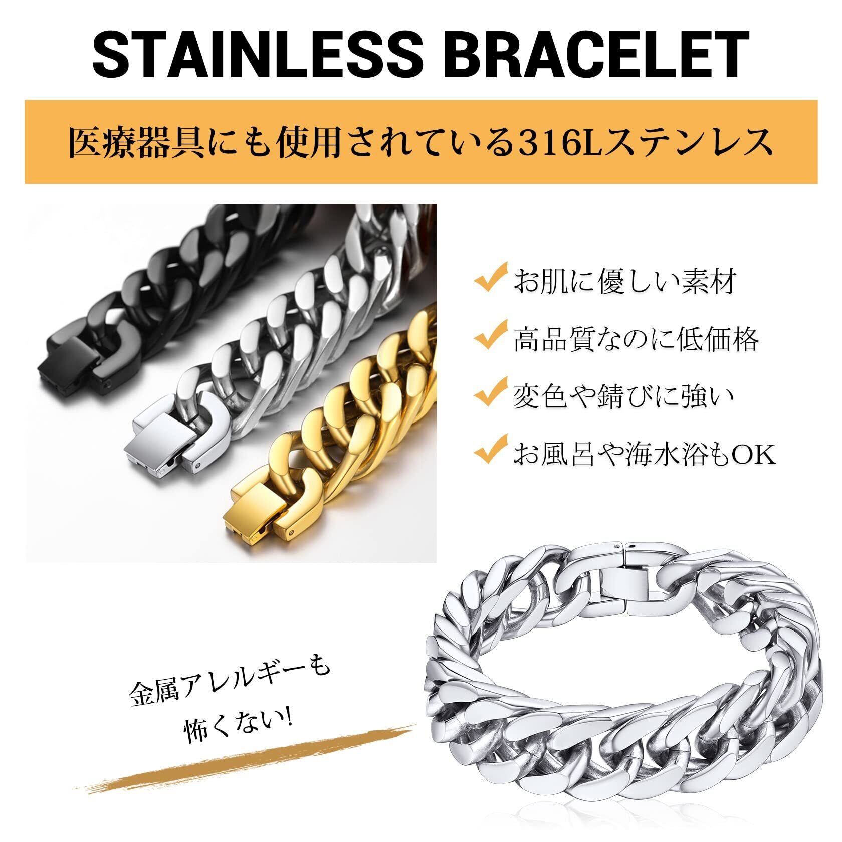 [ChainsHouse] ブレスレット メンズ サージカルステンレス 喜平チェーン 金属アレルギー対応 つけっぱなし 中折れ式留め