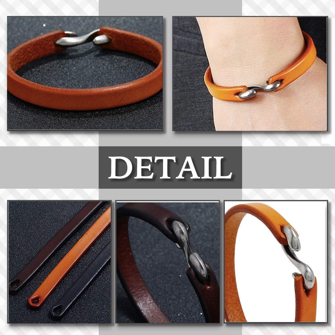 本革 牛革 だから使い込むほど味が出て腕になじむ フック タイプの シンプルで おしゃれな メンズ レザー ブレスレット。