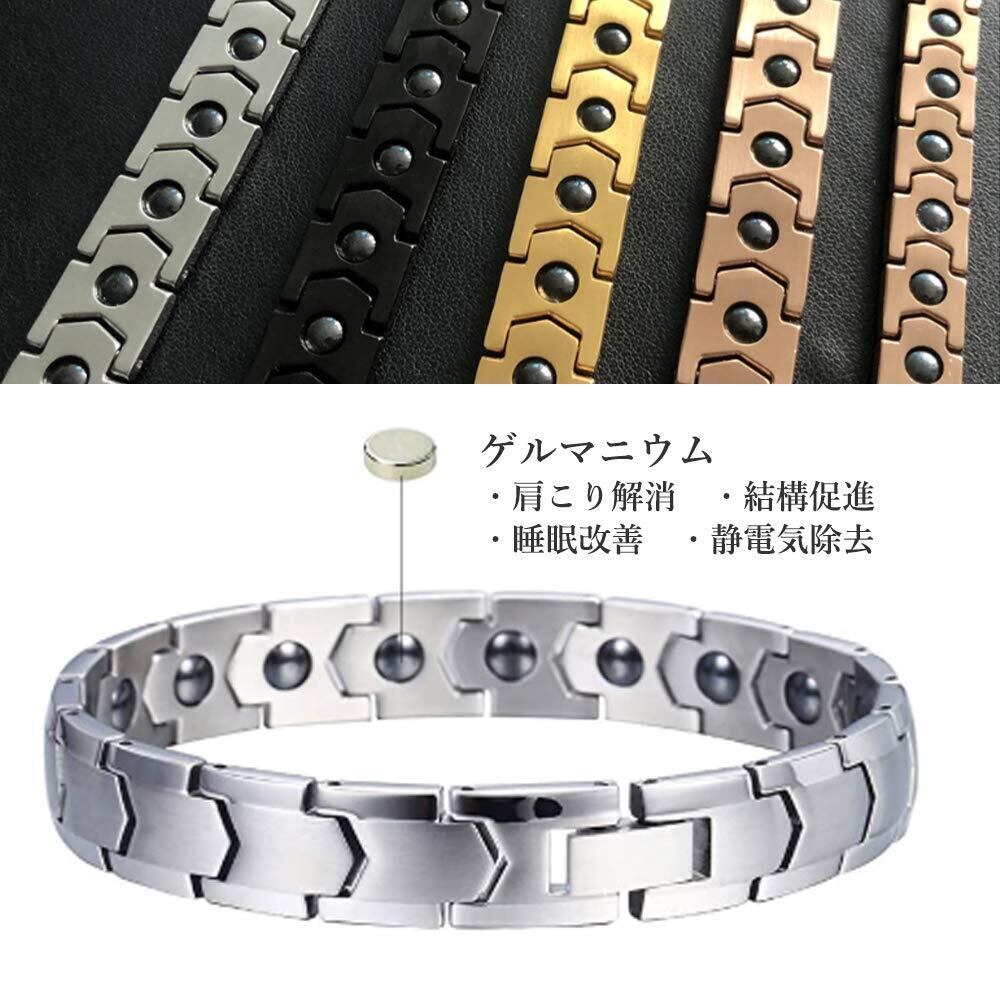 【数量限定】[Mercure] ゲルマニウム ブレスレットメンズ ステンレス 磁気純度99.99% キュービックジルコニア使用
