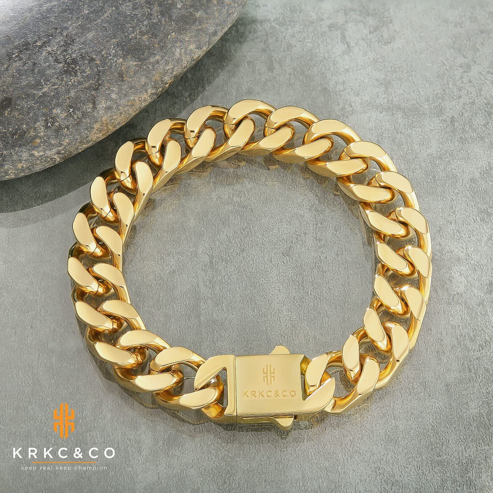 【数量限定】KRKC&CO 喜平ブレスレット メンズブレス 12/14mm サージカルステンレス 6面/4面カット キューバンチェーン k18金メッキ キヘイ 腕輪 ダンサー B系 ストリート ヒップホップ ラッパー ギフト