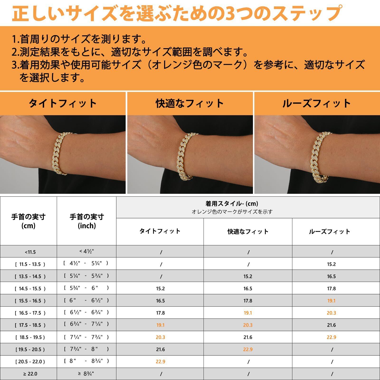 【存在感抜群のブレス】B系アクセの人気デザイン、マイアミキューバンリンクのチェーンブレスレット。表面には無数のジルコニアを散りばめており、光の当たり具合により輝きが魅力的に変化します。これ1本だけでも手元で圧倒的な存在感を発揮します。