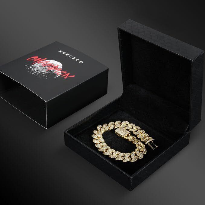 KRKC&CO 喜平ブレスレット ジルコニア マイアミ キューバンブレスレット 12/18mm メンズ ブレス 14K金メッキ CZダイヤ 太目 男性 腕輪 ヒップホップ ストリート かっこいい アクセサリー