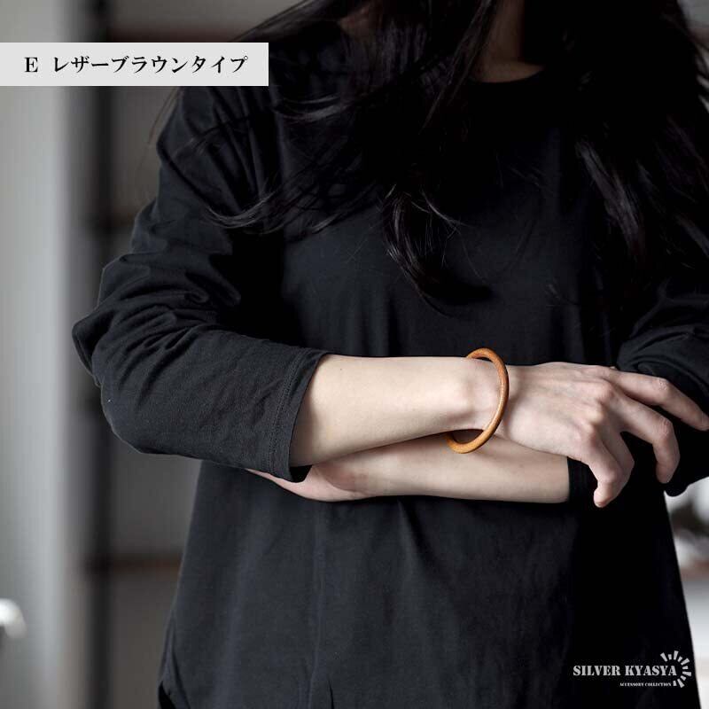 [silver KYASYA]継ぎ目なし 本革 バングル レザー ブレスレット 牛革 腕輪 シンプル プレーンバングル 7カラー 太め 重ね付け 特注品 入手困難