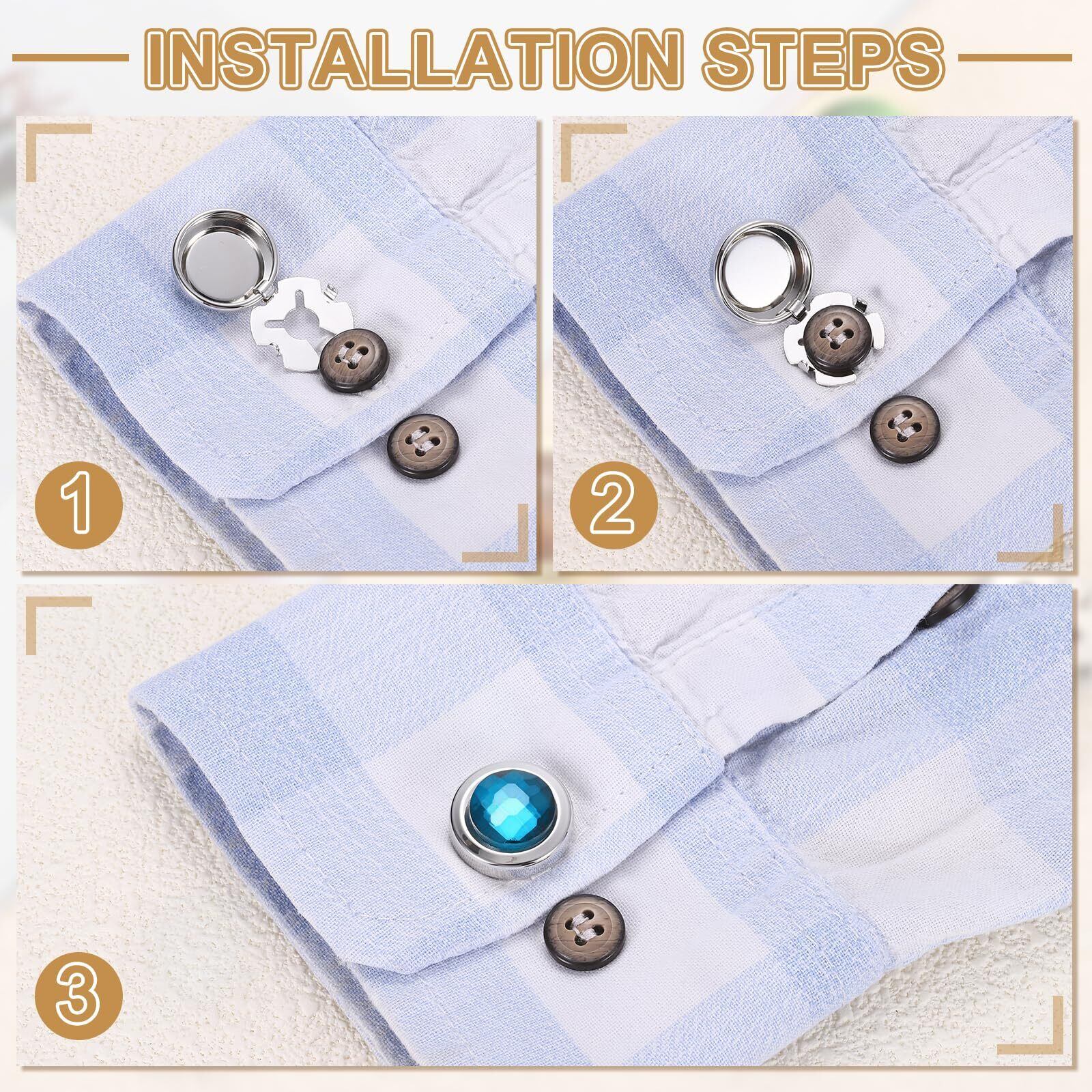uxcell メンズボタンカバー2個組、フォーマルシャツ・タキシード用銅製カフスボタン ビジネス・結婚式・パーティー・誕生日用(ダークブルー、シルバー)