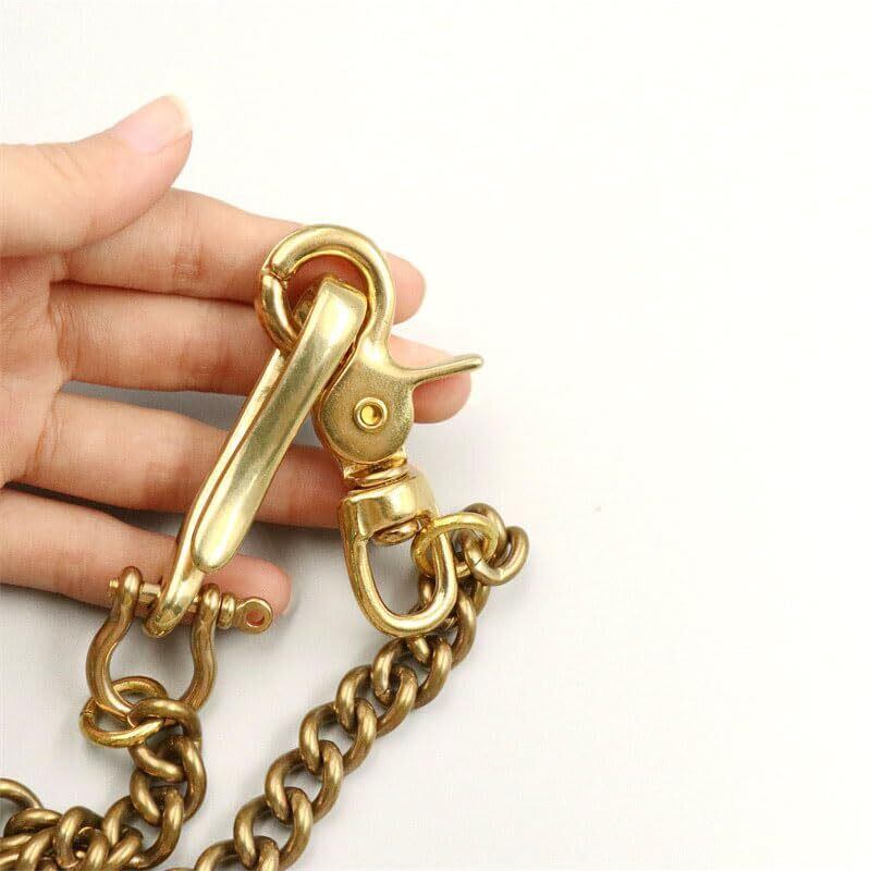 "【シンプルで重厚感のある美しいブラスウォレットチェーン】