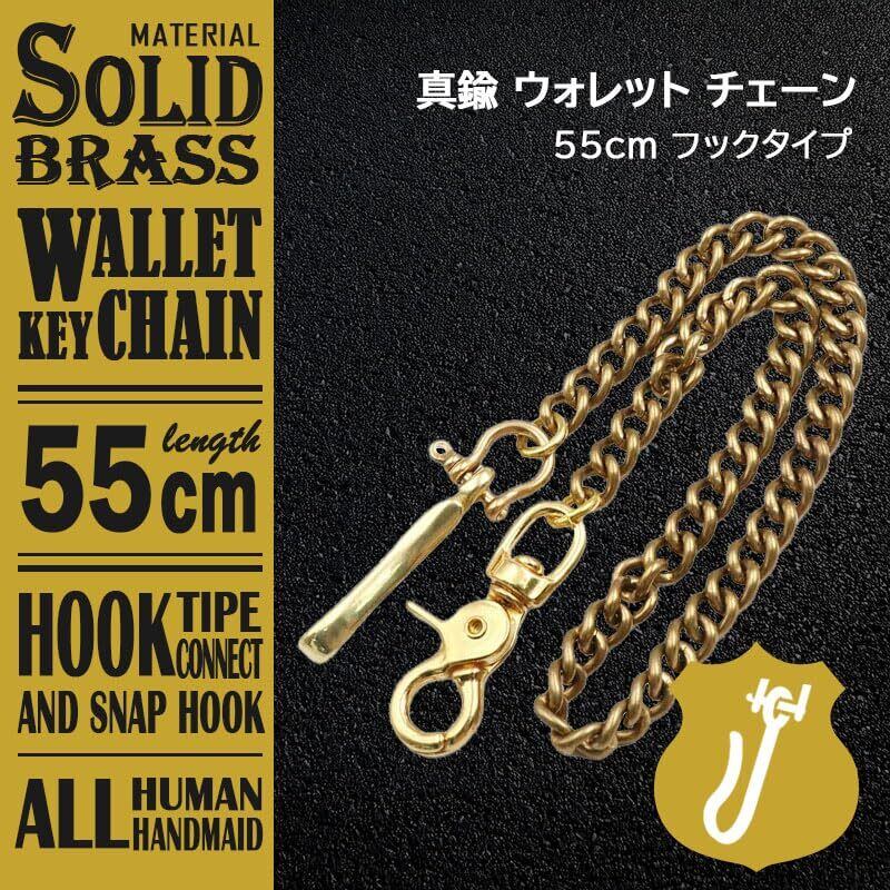真鍮 ウォレットチェーン 真鍮製 真鍮無垢 ブラス 喜平 小豆チェーン チェーン フック/リング レバーナスカン アクセサリー 重厚感 ワンポイント アメカジ ヴィンテージ アンティーク風 経年変化 (55cm(フックタイプ))