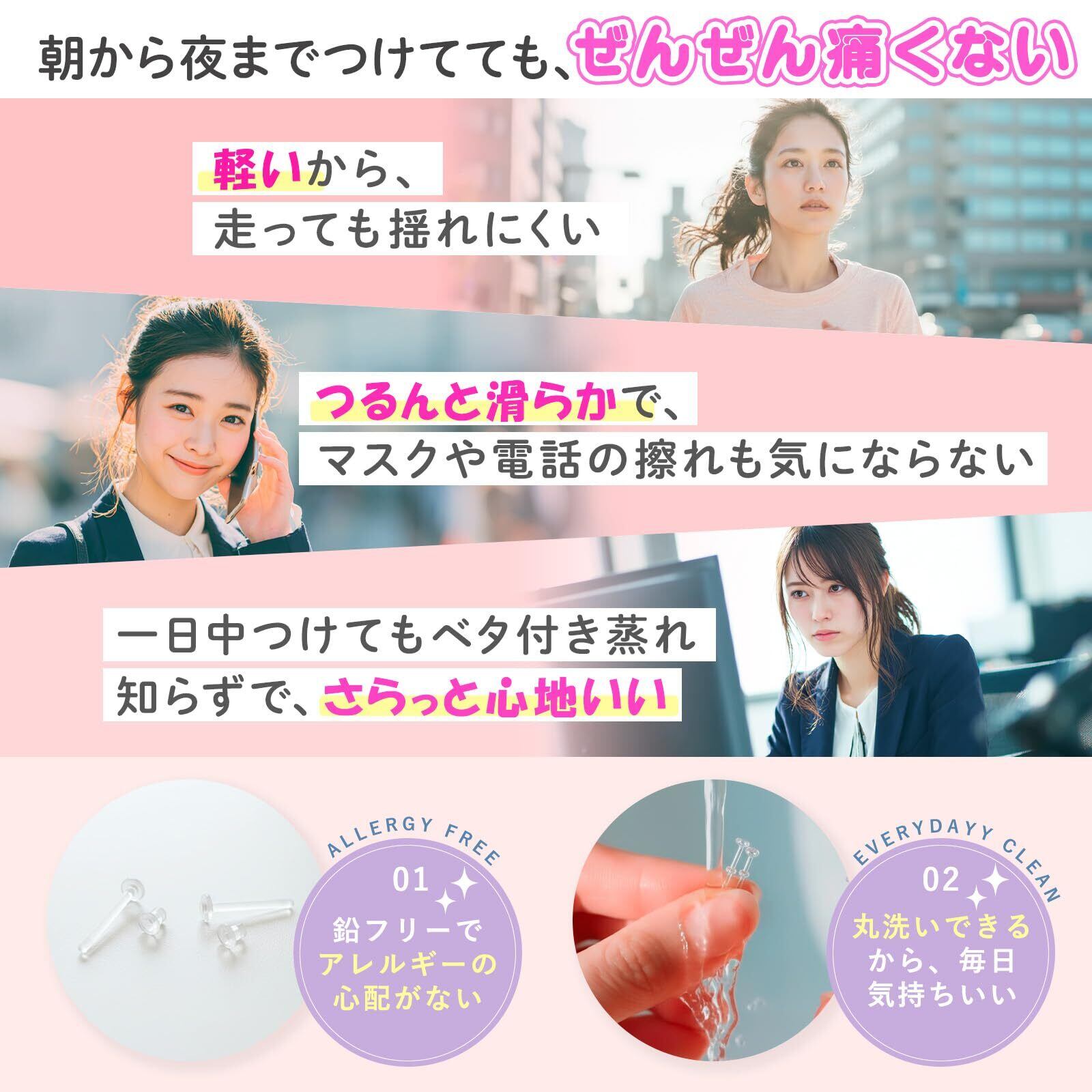 【2022最新】MUM JAPAN 透明ピアス ガラス 4本セット キャッチ8個付き 肌になじむ ファーストピアスにも 収納ケース付き