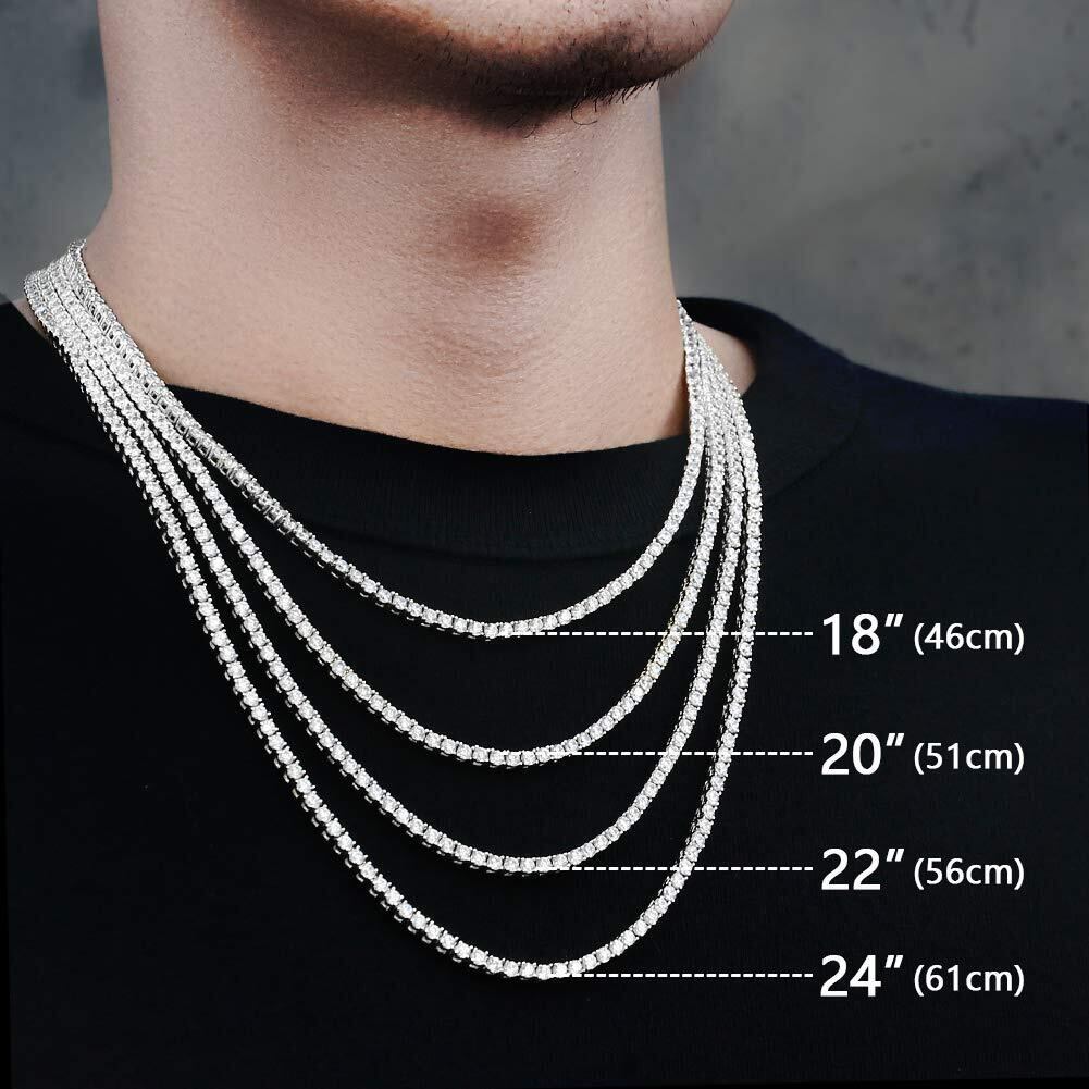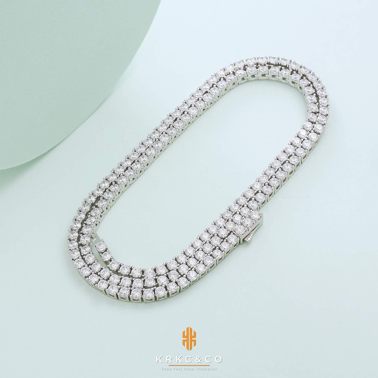 【手作業による爪留め】5A等級の大粒CZダイヤを使用することで、通常のテニスチェーンより輝きが増します。ストーンは1粒1粒ジュエラー職人による爪留めセッティングのため、光の当たり具合により輝きが魅力的に変化します。安価なのり付けの品物とは異なるラグジュアリー感に溢れています。