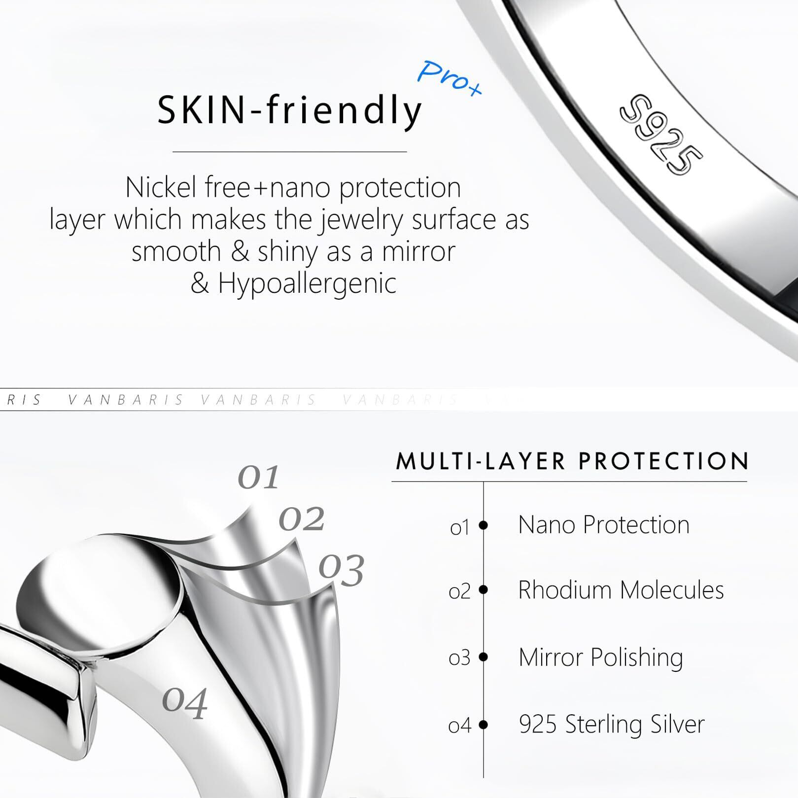 【肌に優しい】:純銀製でニッケル不使用、低刺激性で安全に着用できます。