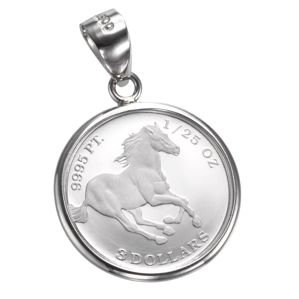 Pt999 純金 コイン ペンダント ツバル ホース 1/25oz Pt900 シンプル枠