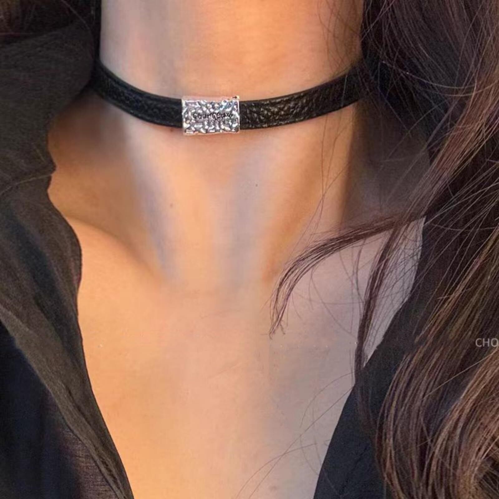 【在庫セール】[Izemisonico] チョーカー PU皮革 レディース 首輪 ネックレス レザー シンプル パンクロック v系 ゴシック ヴィジュアル系 原宿 ハロウィン セクシー 女性 仮装 撮影 フェス ライブ 首飾り 春夏 秋冬 (長方形)