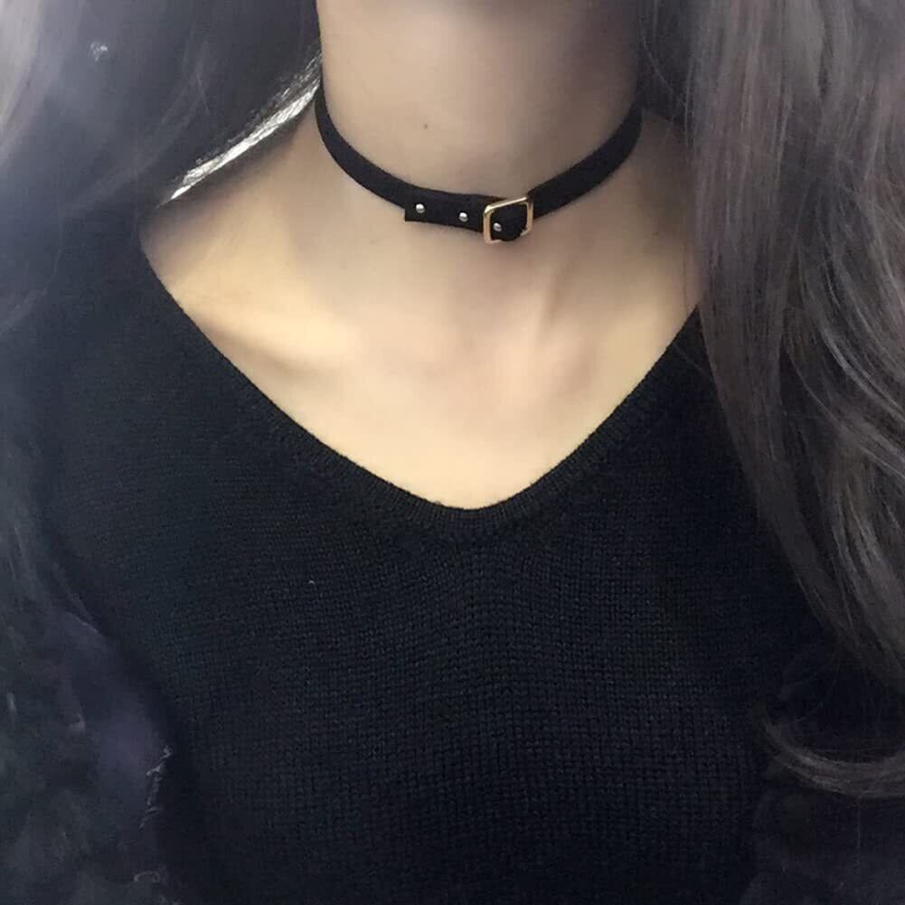 [Deelfel] チョーカー レディース 黒 レザー チョーカー リング ゴールド シルバー シンプル チョーカー ベルト 黒 首輪 ステンレス ファッション アクセサリー サイズ調整可能