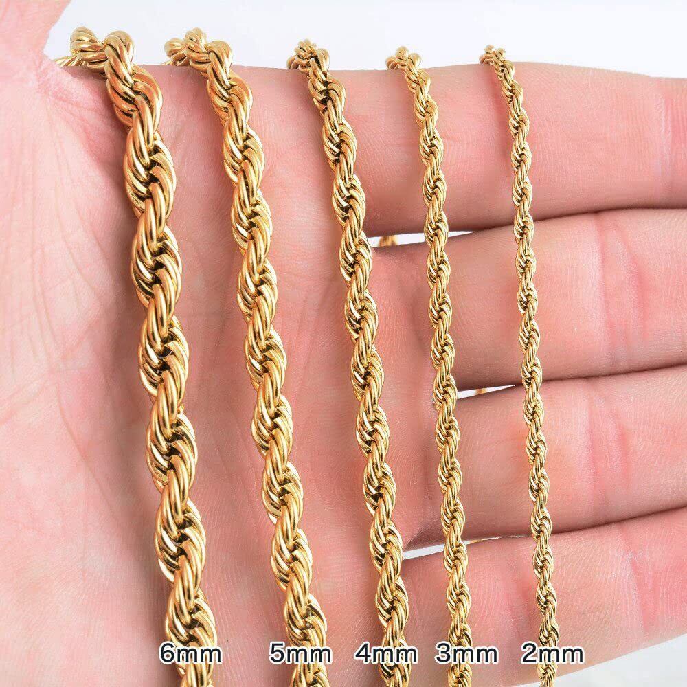 普段使いに最適なシンプルロープチェーンネックレス。 メンズにもレディースにもおすすめのデザインでどなたにでもおすすめできるシンプルなチェーンネックレス!ツイストされたチェーンでそのままでもお持ちのネックレストップを合わせてもしっかりデザイン性のあるチェーンです。 フォーマルスタイルにもカジュアルスタイルにも相性がよく、シーンを選ばずどんな時でも着用OK! カラーバリエーションはゴールドとシルバー、ピンクゴールドの3色展開で太さは2mm、3mm、4mm、長さも各種取り揃えてあり、自分の好みにあったサイズを選択可能。 サイズ違いのチェーンを重ねづけすることで、きれいな輝きで存在感を強調しオシャレにコーディネートすることができます。