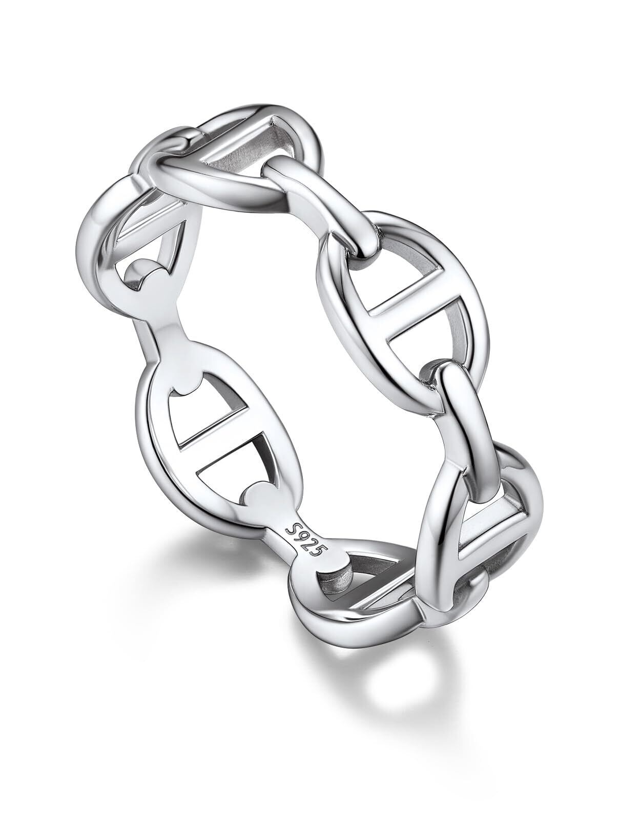 シンプルな指輪:立体的なアンカーチェーンモチーフが個性的な印象のデザインリングで、シンプルでスタイリッシュなデザインが指元を華奢に魅せてくれます。デイリーに身に付けられ、きれいめ系、カジュアル系、韓国系、様々なファッションジャンルに相性抜群。
