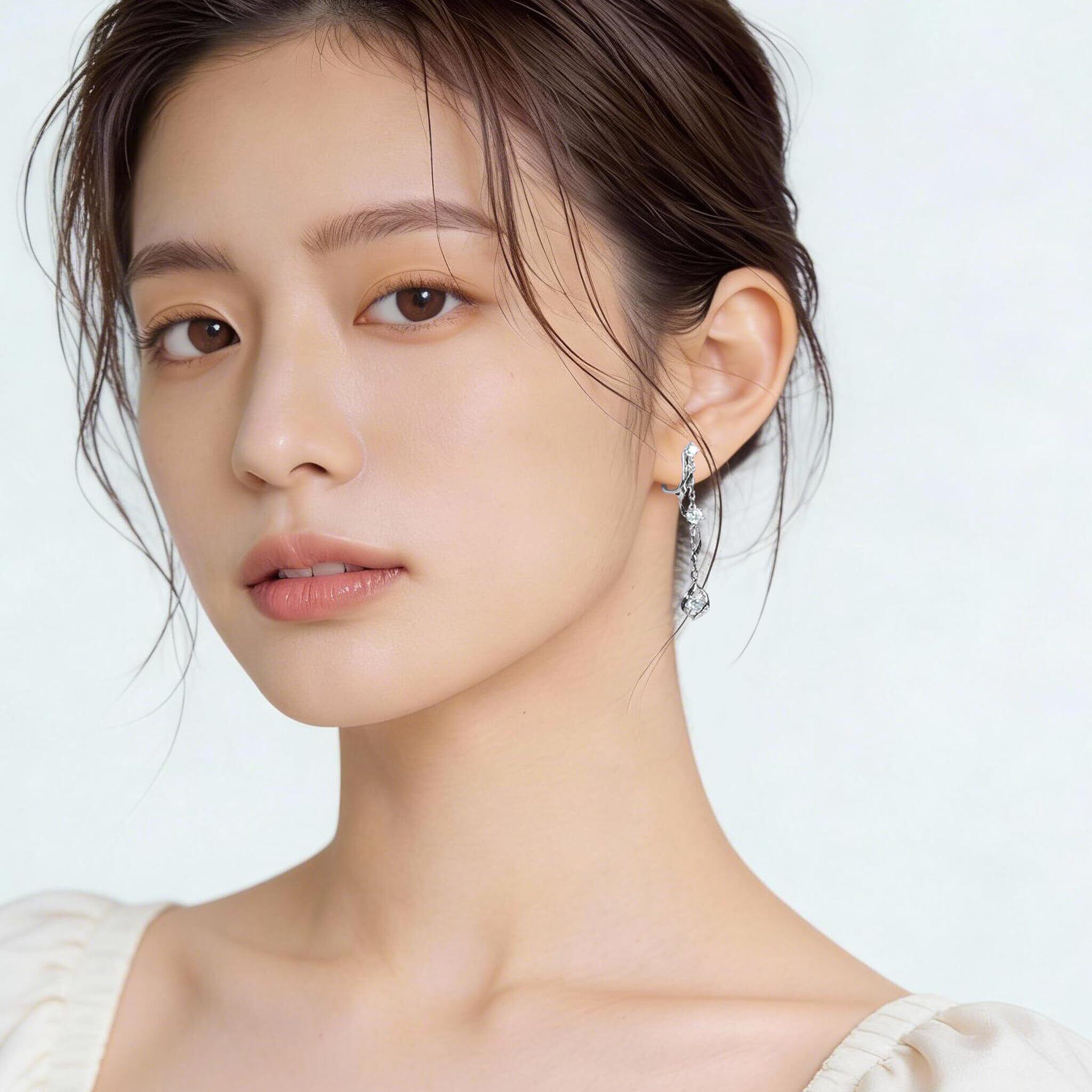 秋の風に舞うトパーズイヤリング:長く優雅に揺れるトパーズのきらめきが肌に溶け込み、歩くたびに秋風がそよぐような清らかな輝きを放ちます。ジルコニアの繊細な光が顔周りをふんわり照らし、上品な印象を添えます